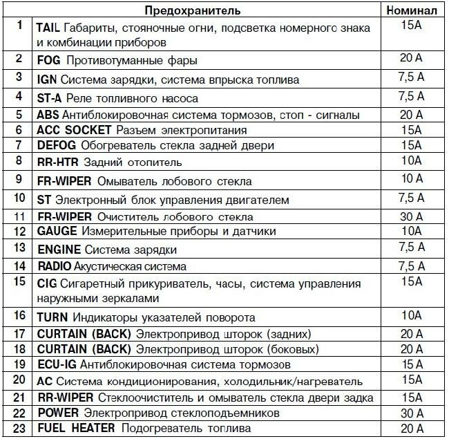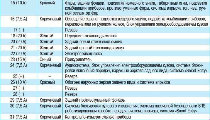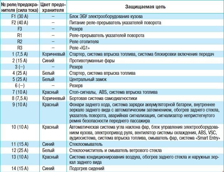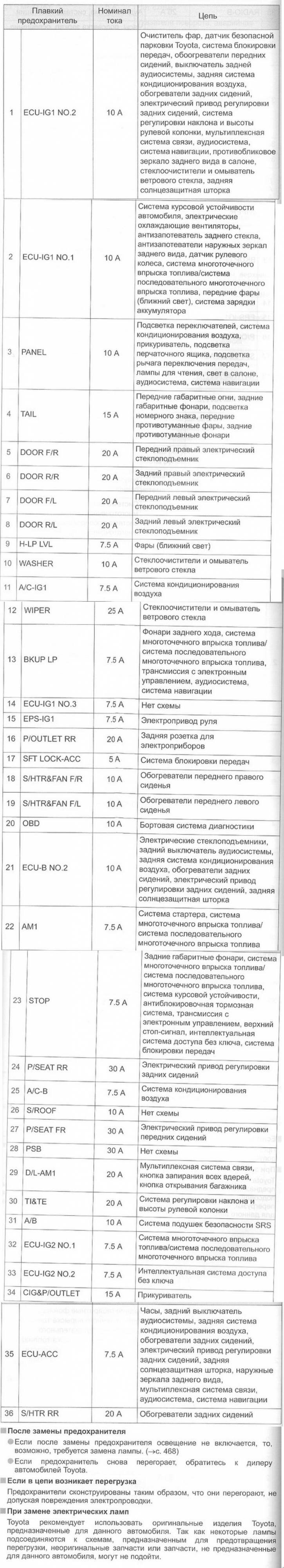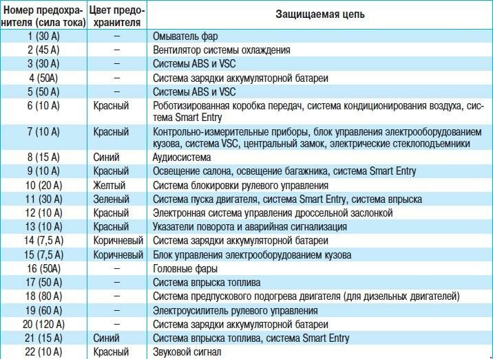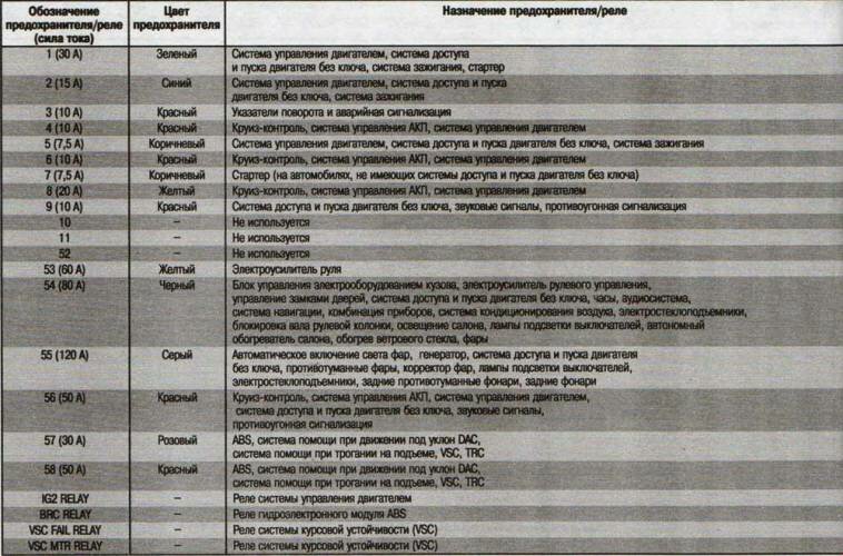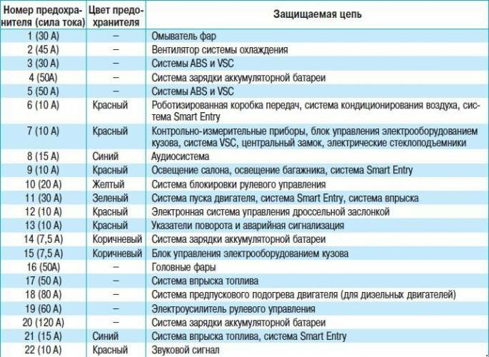 Предохранители автомобиля Toyota RAV4 с 2005 г