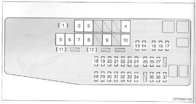 Схема предохранителей автомобилей Toyota Corolla, Marino, Ceres, Trueno