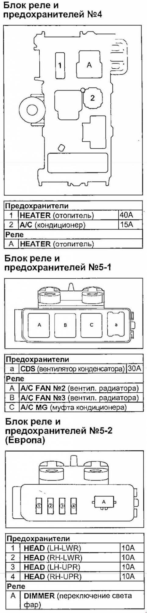 Предохранители Toyota Estima, Estima Lucida 1990-1999