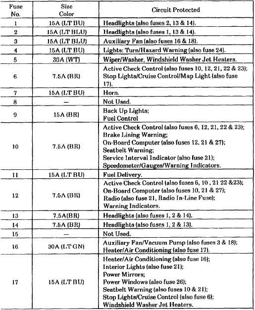 № предохранителя Защищаемая цепь (ru | de) Сила тока, А