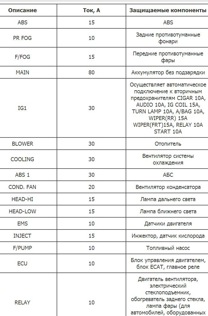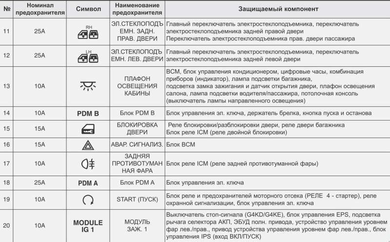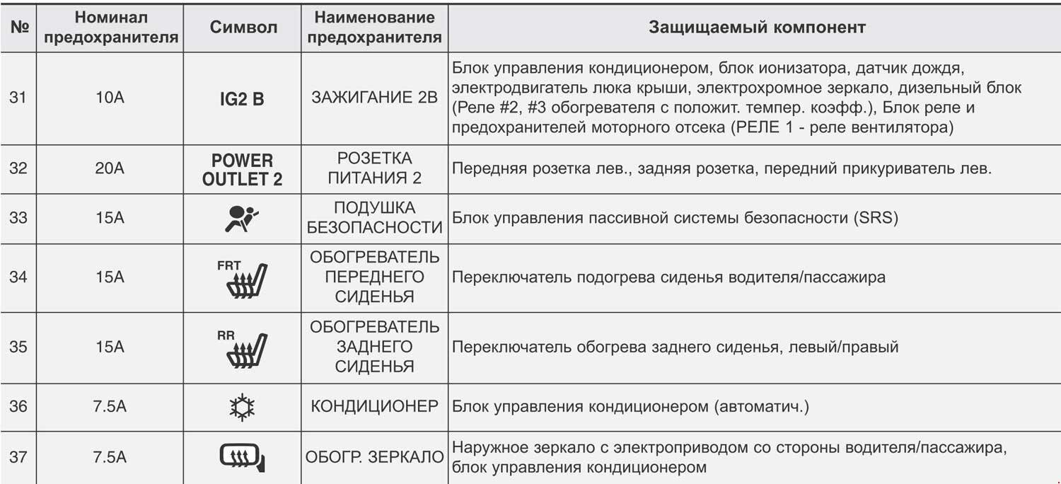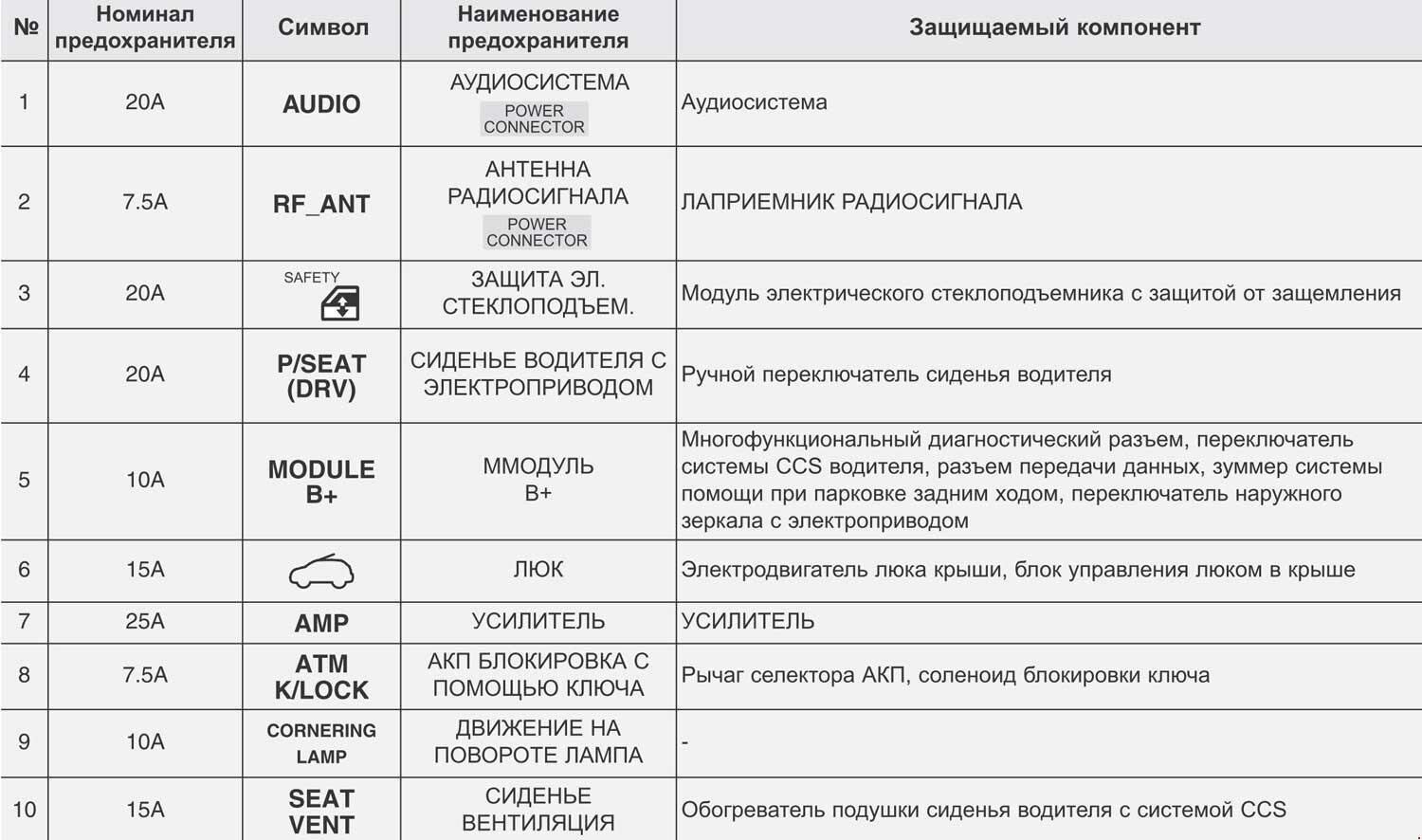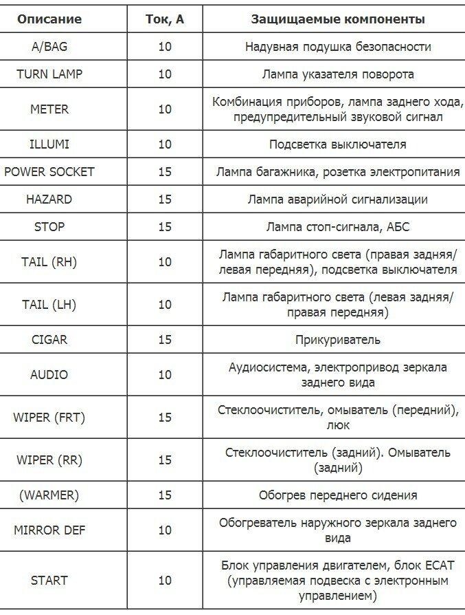 Схема блока предохранителей автомобиля Kia Sportage 3