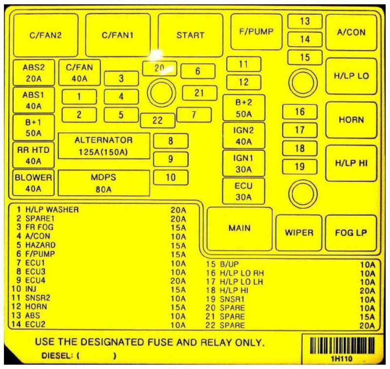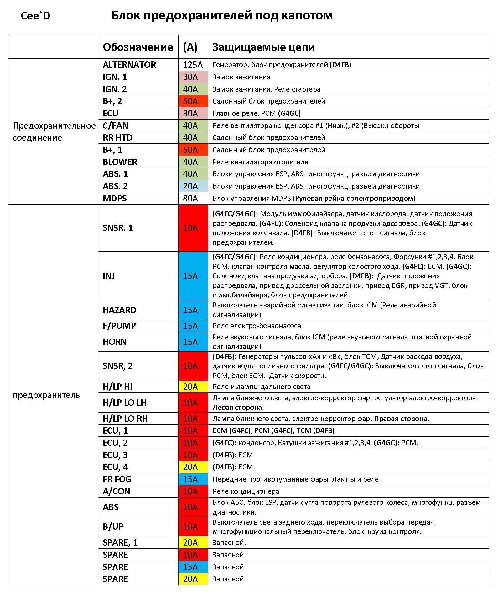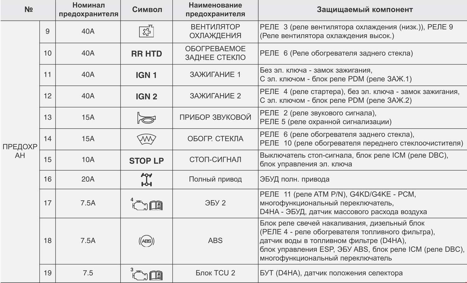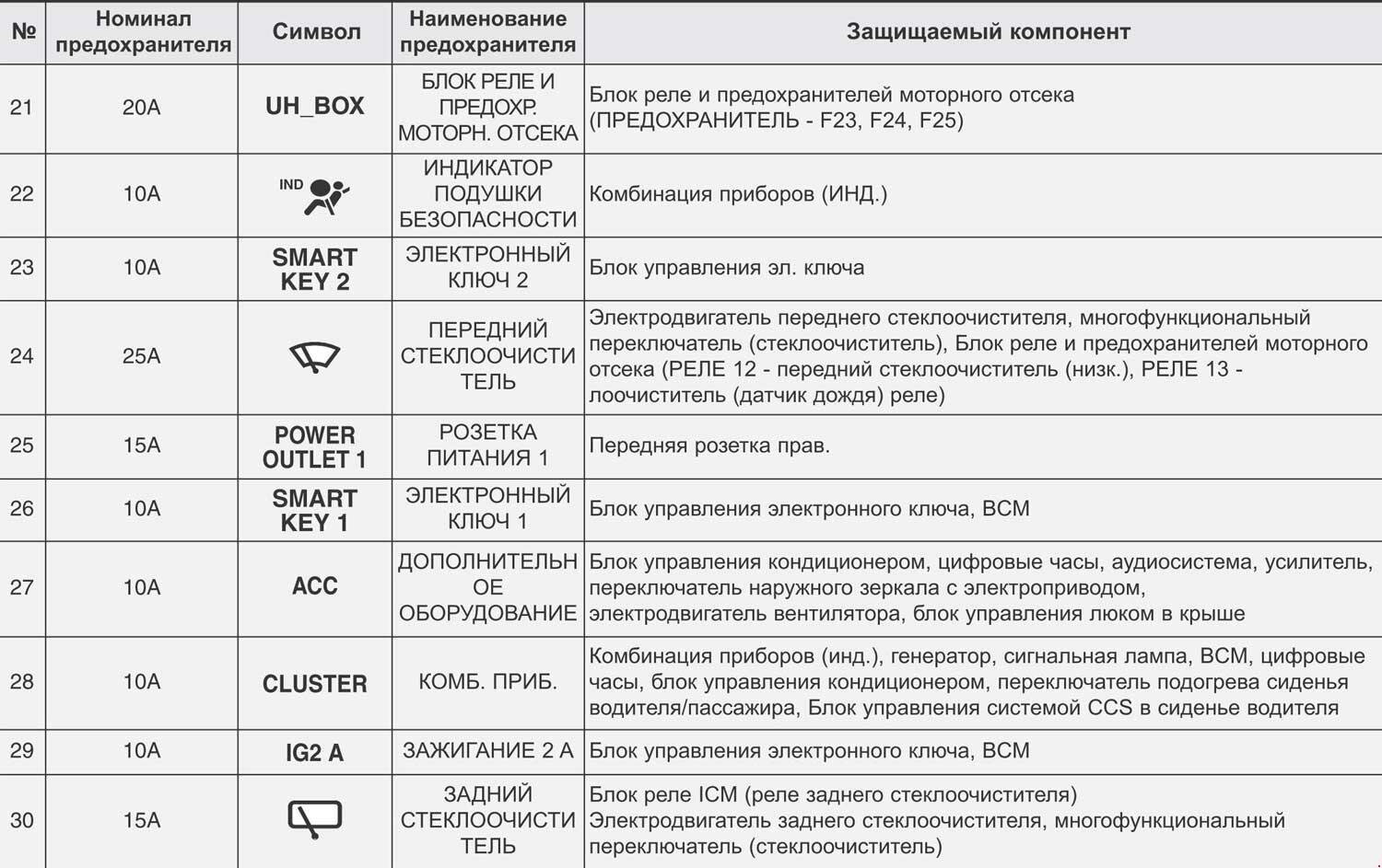 Схема блока предохранителей автомобиля Kia Sportage 3