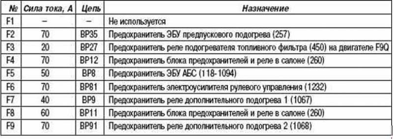 Схема предохранителей двигателя Renault Megane 2