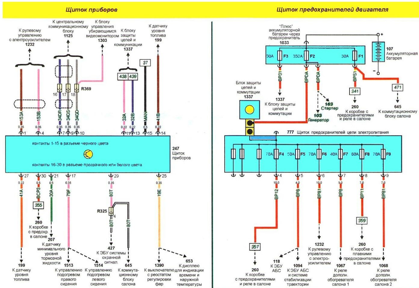 - Коричневый, 70А — система преднакала (дизель)