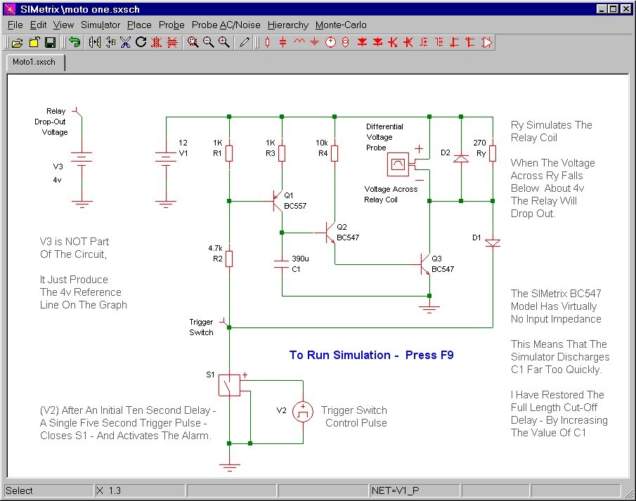 Пока хотя бы один переключатель остается замкнутым - сирена сигнализирует о проблеме. Примерно через две минуты после того, как переключатели окажутся снова открыты - пройдёт сигнал сброса. Как долго времени продлится для выключения - зависит от характеристик конденсатора С1. Подробнее смотрите на скрине симулятора работы схемы: