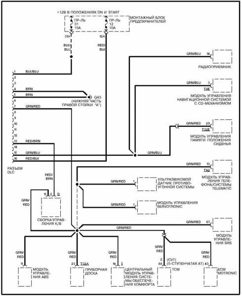 Электросхема управления двигателем 1,8
