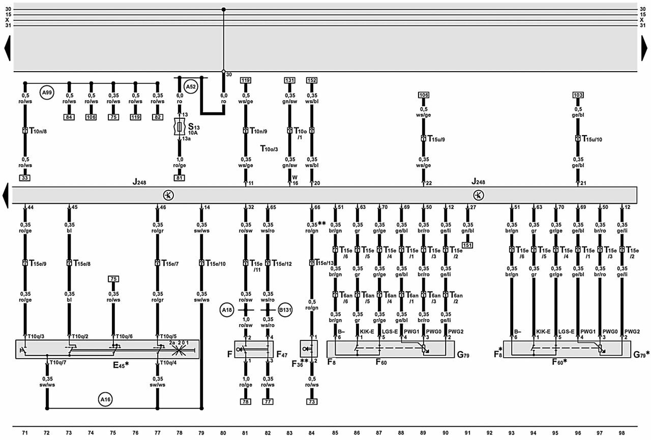 A66 – соединение (30а, ZV/ DWA/ IR) в электропроводке панели приборов