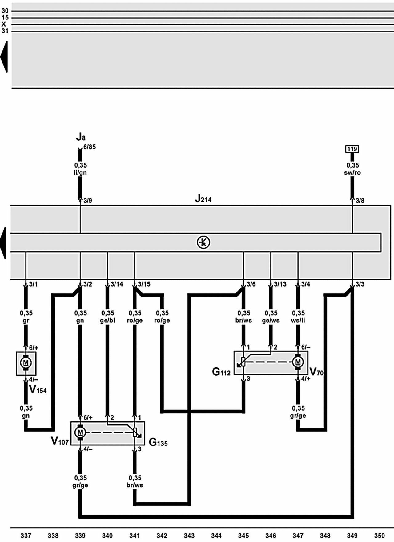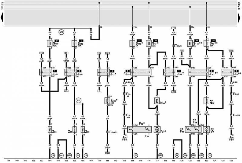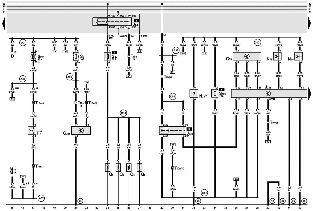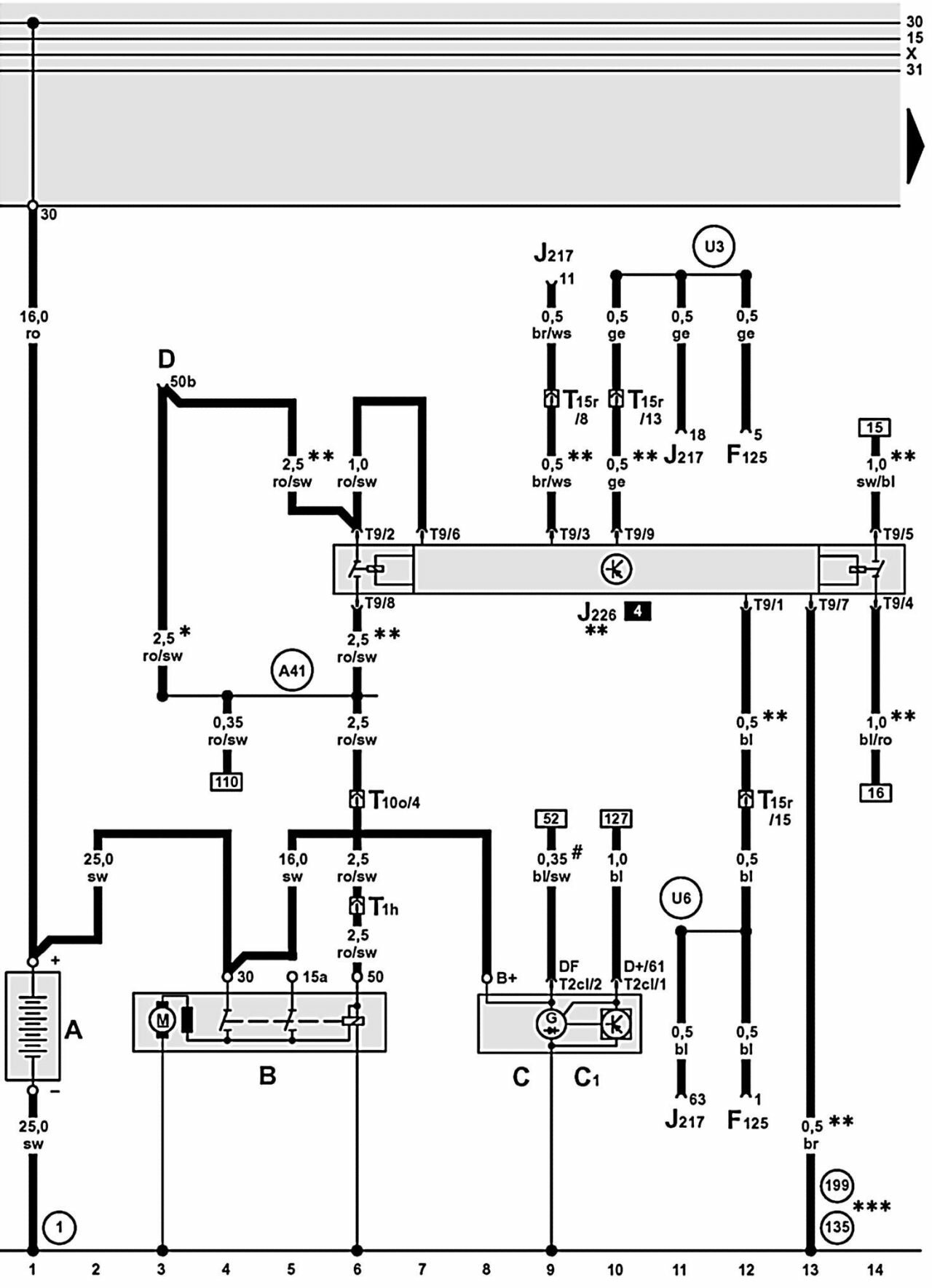 Продолжение описания электрооборудования авто AUDI A6. Ниже приводятся схемы и обозначение элементов на электросхемах. Для увеличения - кликните на схему. Источник - сайт по принципиальным схемам Ауди.