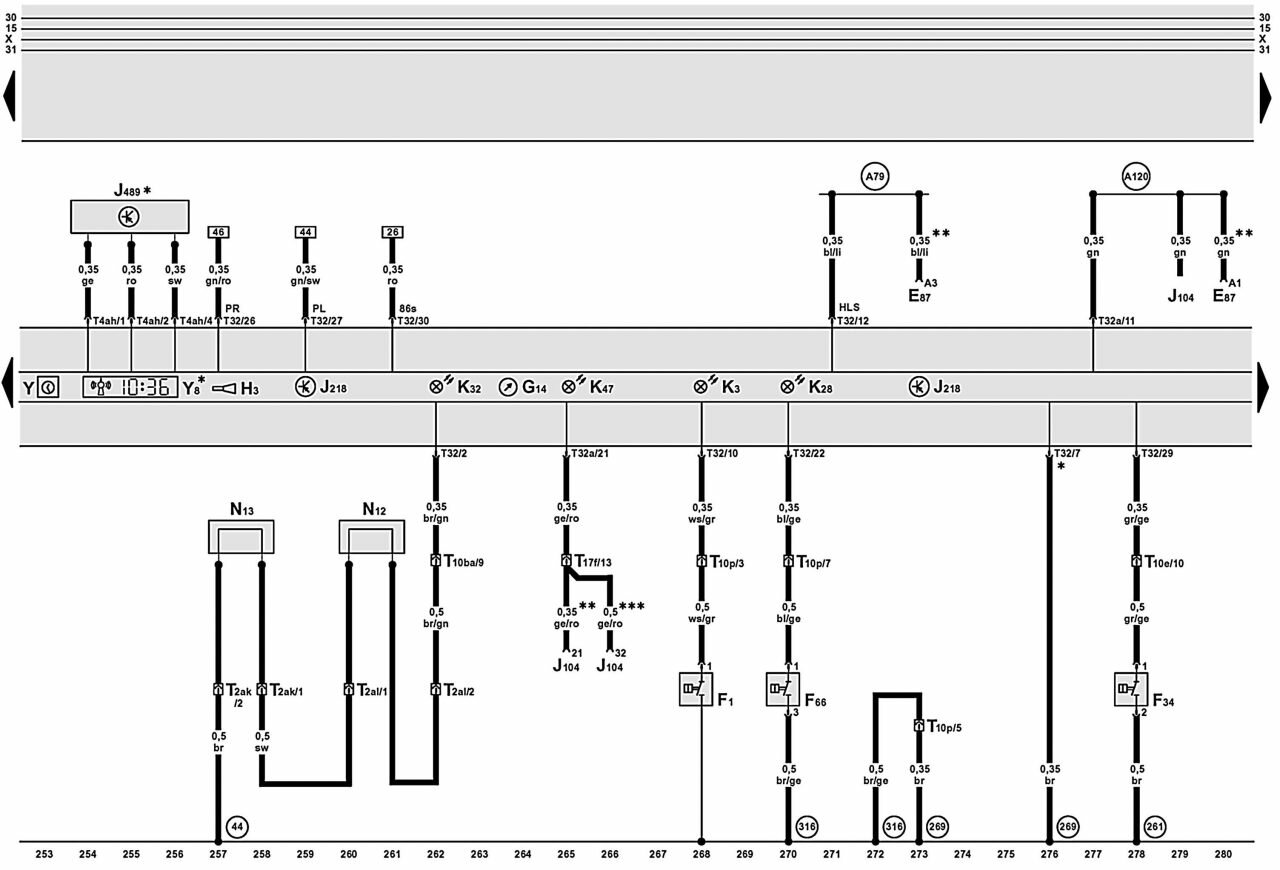 A99 – соединение –1– (87) в электропроводке панели приборов