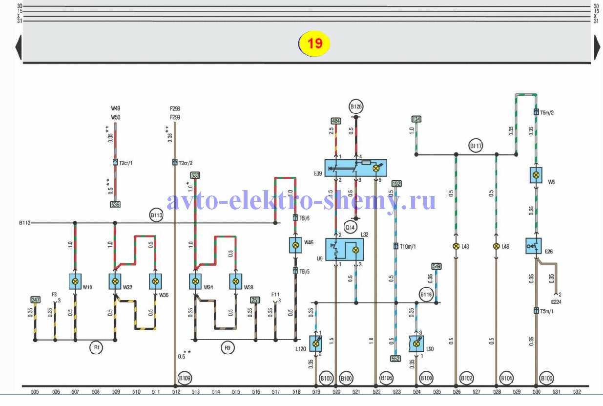 R3 – соединение (дверной выключатель освещения, справа и слева), в электропроводке стеклоподъемник/ система замков с центральным управлением и дверной выключатель освещения