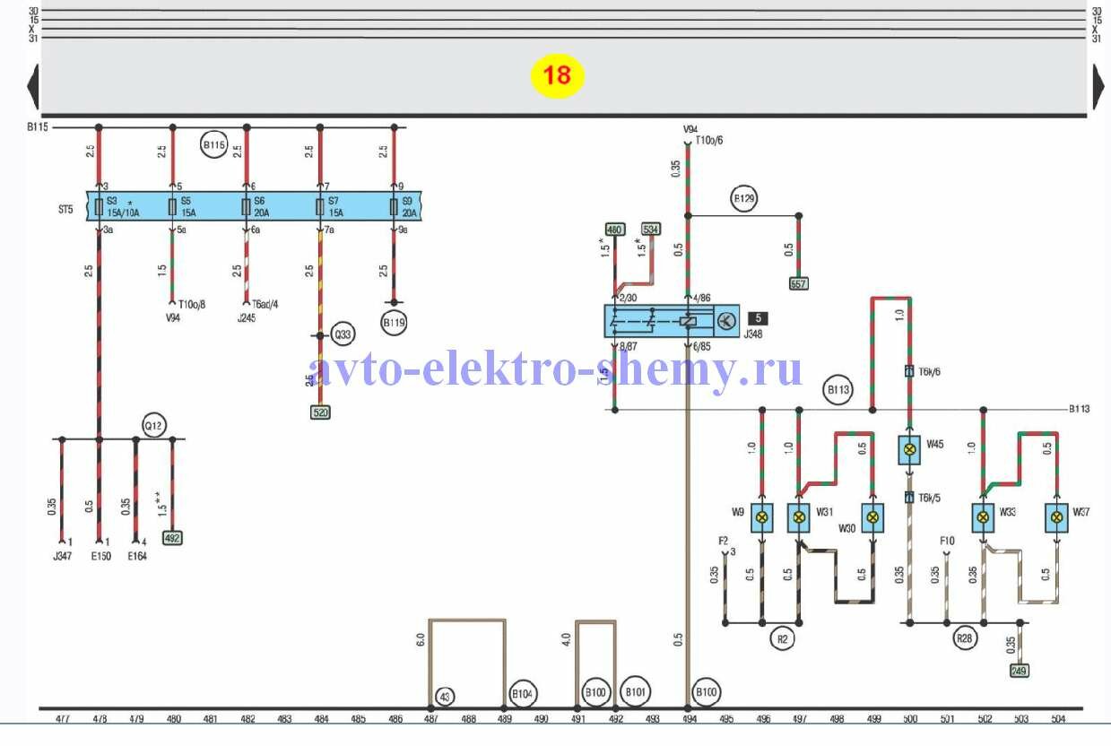 Электросхемы для легкового автомобиля Ауди А8. Все схемы цветные и в хорошем качестве. Бесплатно скачать можно кликнув по изображению. Показаны узлы противотуманные фары, выключатель противотуманных фонарей, противотуманные фонари и фонари освещения знаков номера, выключатель сигнала торможення, прикуриватель, плавкие предохранители, реле омывателя и очистителя стекол и выключатель интервалов стеклоочистителя и другие модули. Начало сборника электросхем Audi A8 смотрите тут.