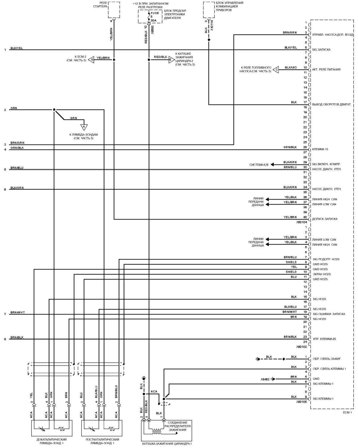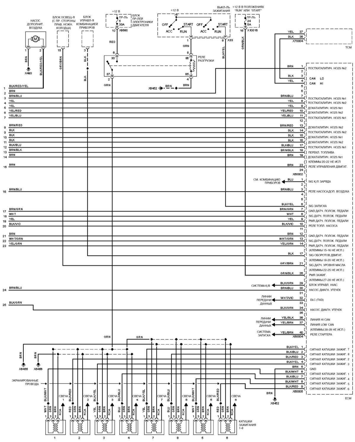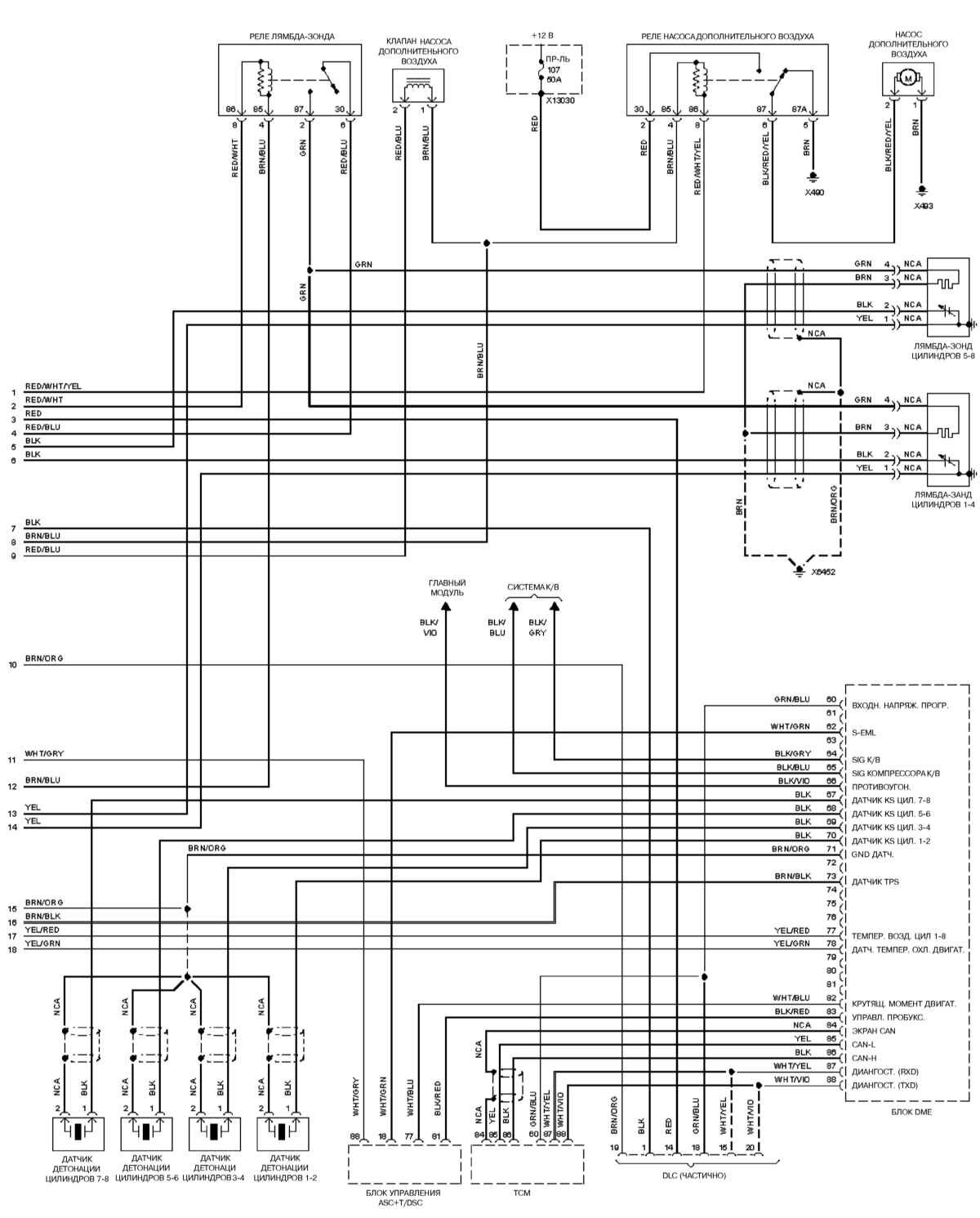 Электросхема двигателя bmw M73 (2000 г.)