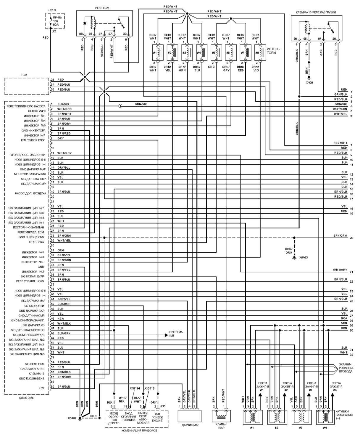 Электросхема двигателя bmw M62 (2000 г.)