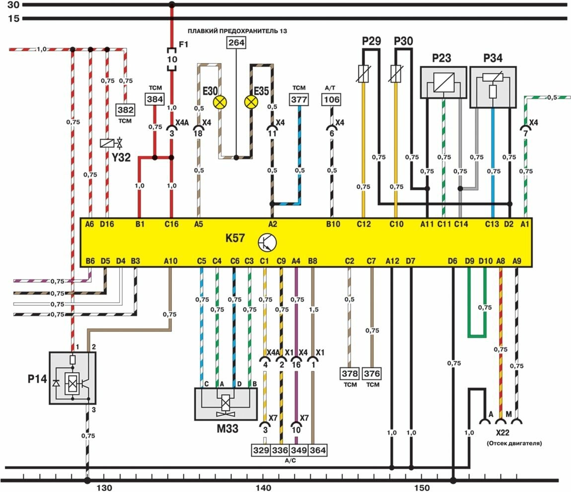Х7........Соединитель (18 штифтов) для жгутов: приборного щитка и переднего