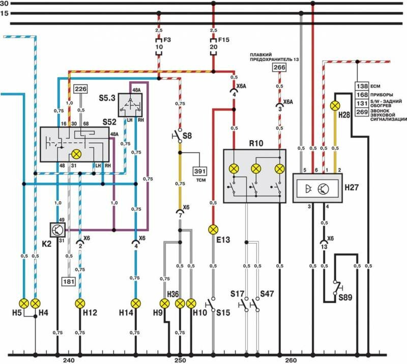 Х6В........Соединитель (3 штифта) для заднего жгута и отвода жгута приборного щитка
