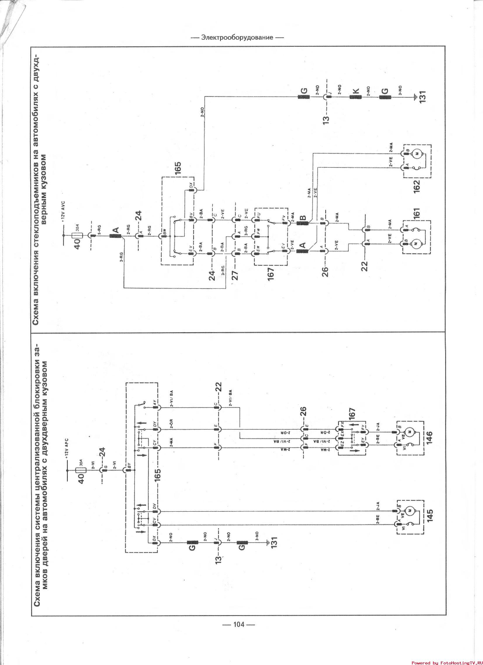 Эл.схема включения стеклоподьемников и АВС дверей