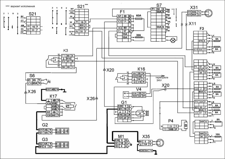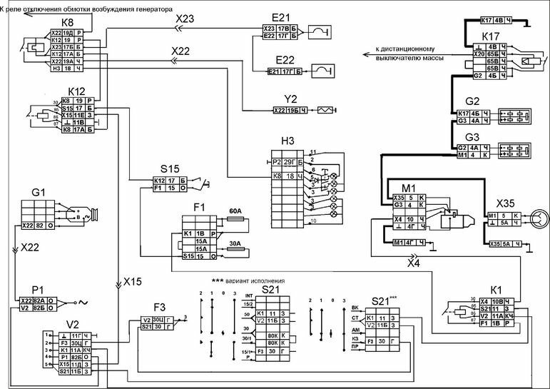 Электросхема наружного и внутреннего освещения КАМАЗ