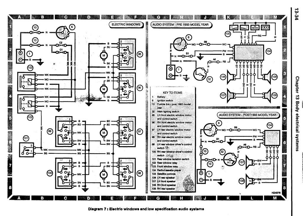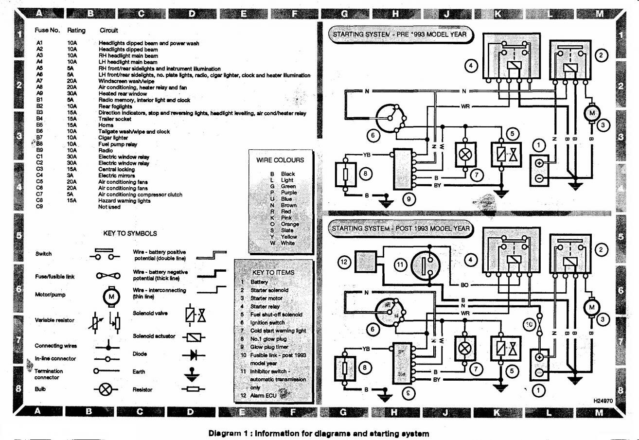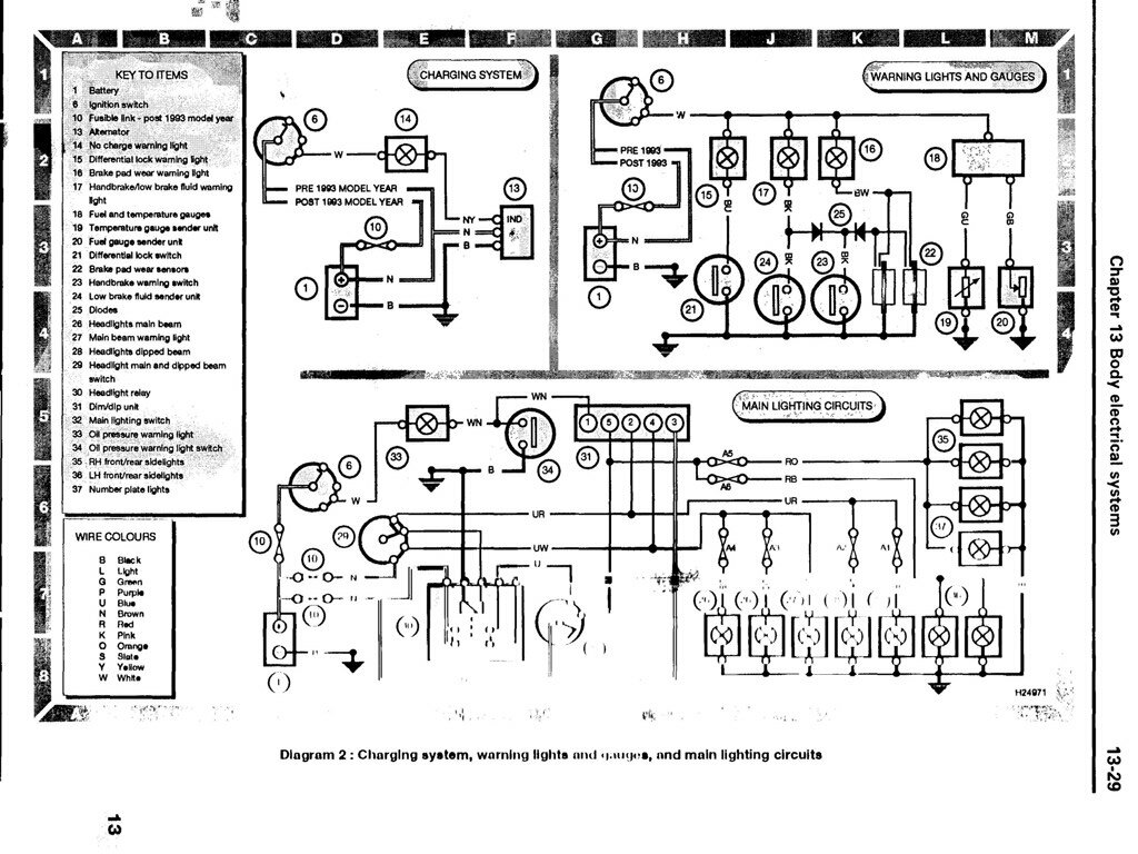 Приведены схемы электрооборудования автомобиля Land Rover Discovery I 1993 года выпуска. Схемы чёрно-белые в не очень хорошем качестве, но этого достаточно для самостоятельного небольшого ремонта неисправностей электрической части авто. Все обозначения на английском языке - воспользуйтесь любым переводчиком.