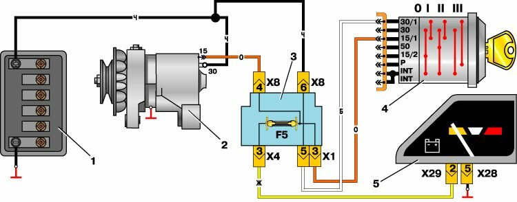 Схема соединений генератора москвича