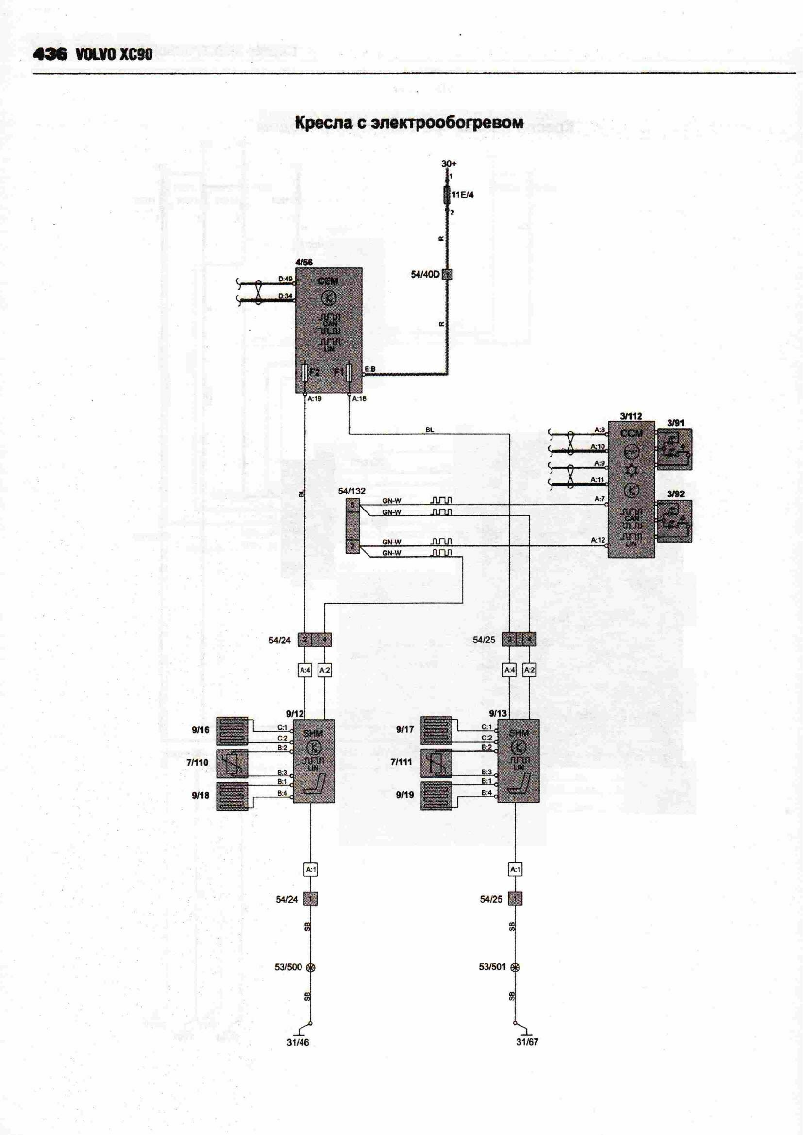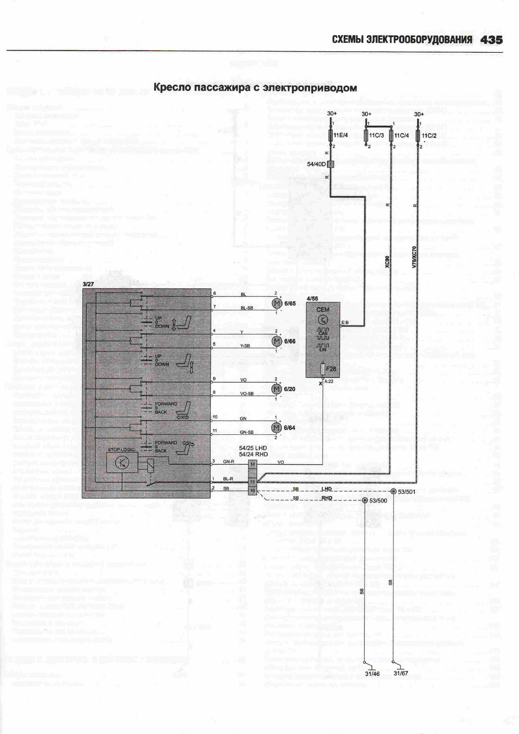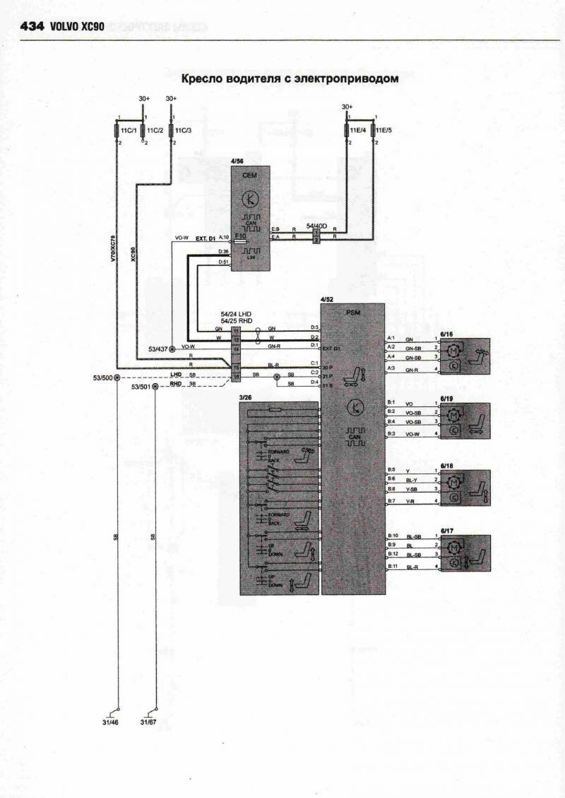 Схема кресел Вольво ХС 90 с электроприводом