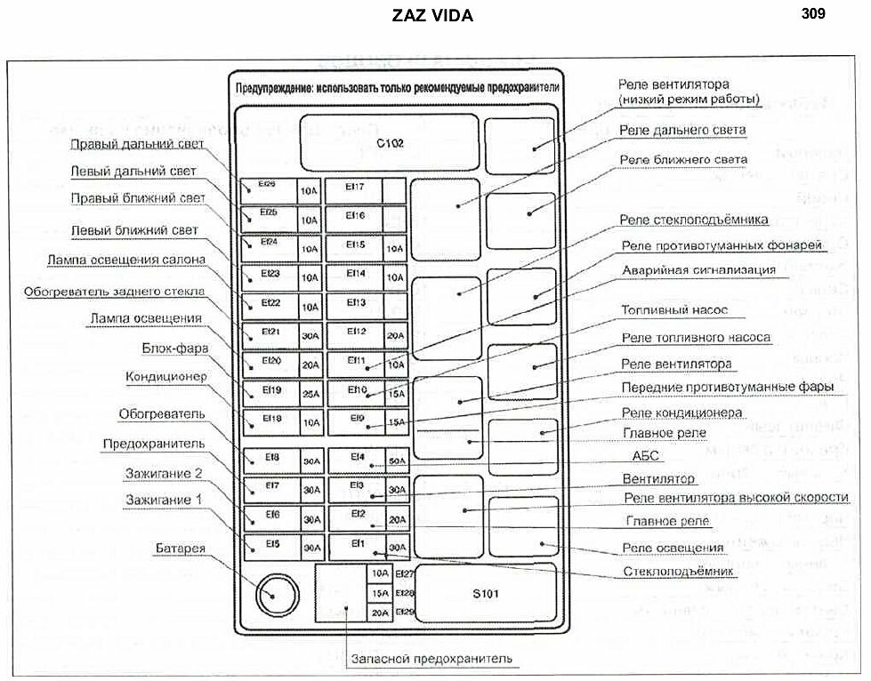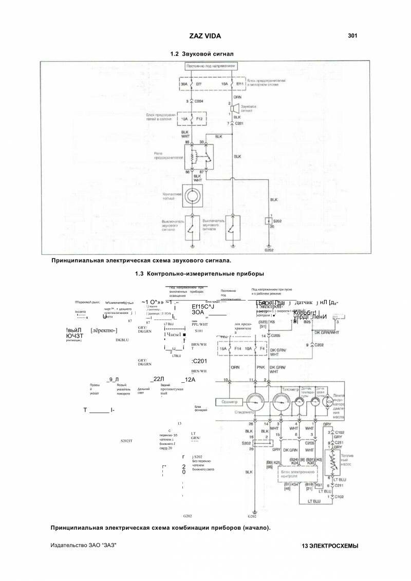Схема пуска двигателя и аудиосистема Zaz Vida