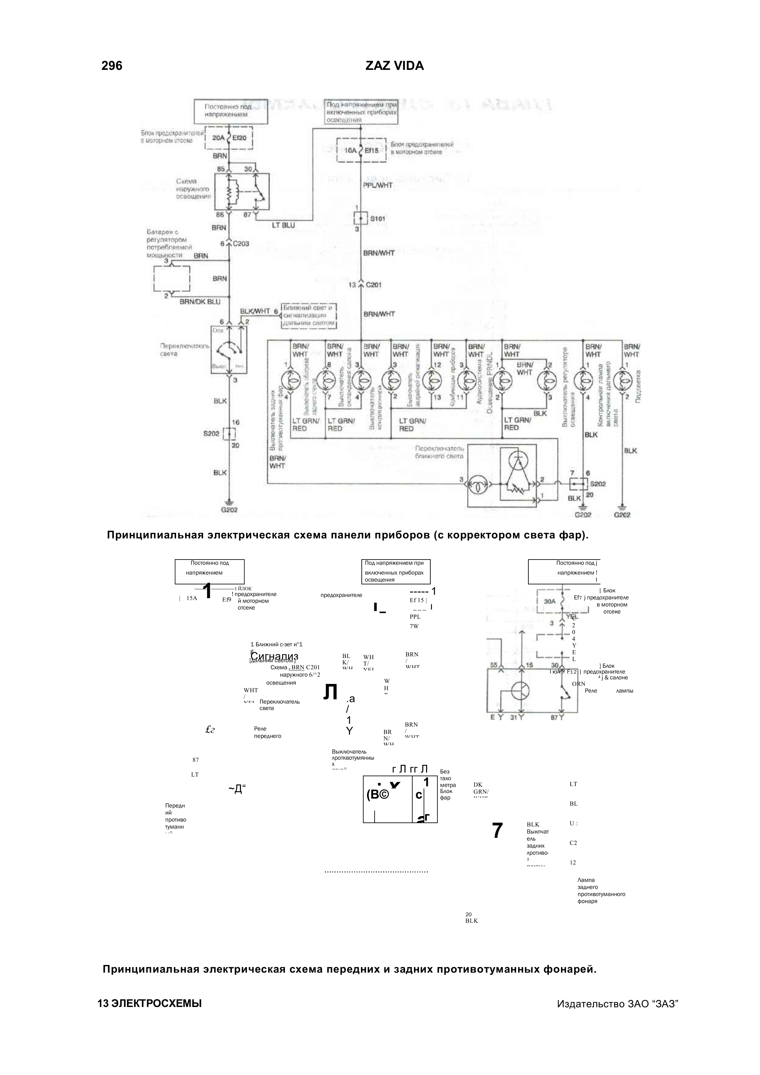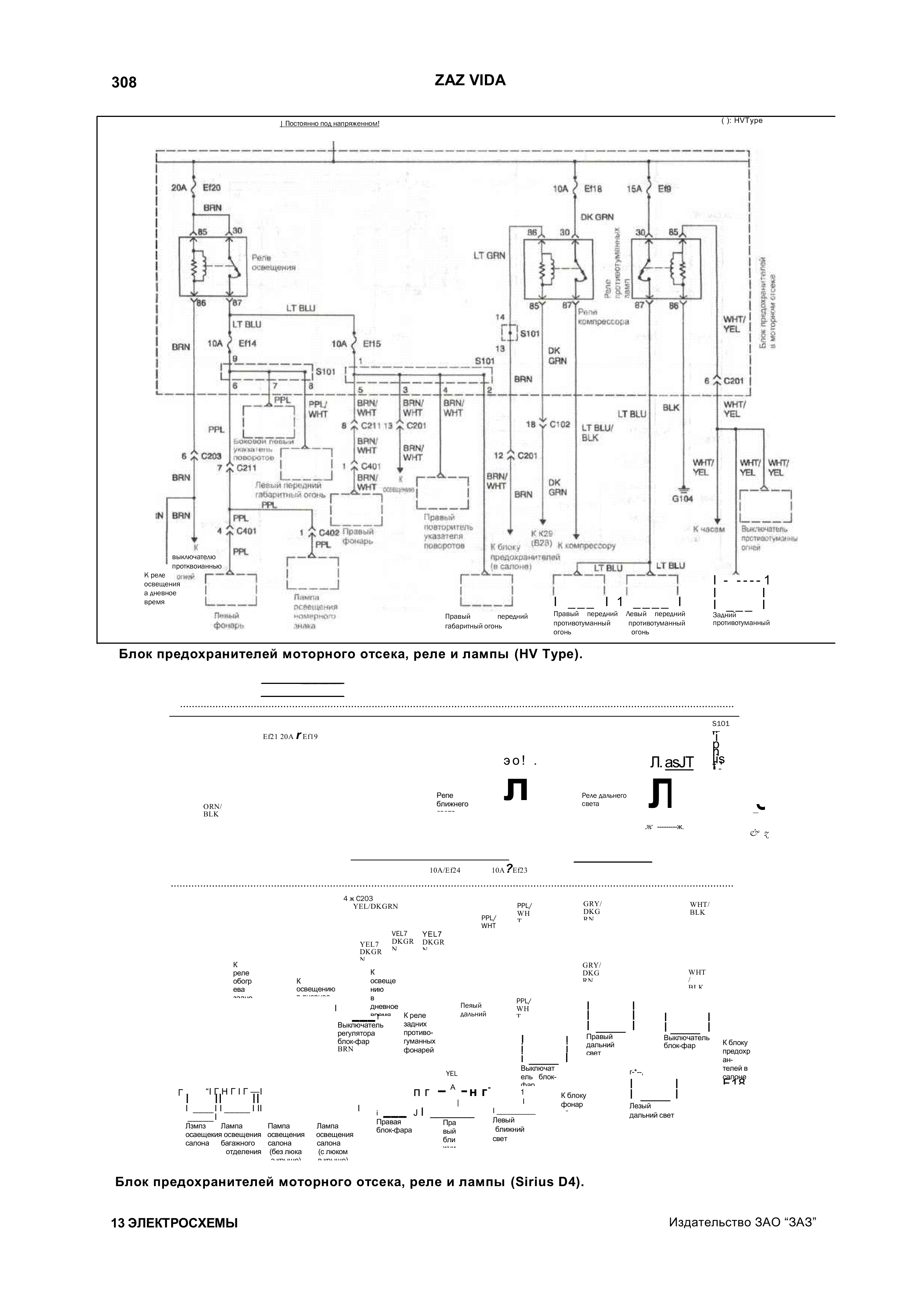 Электросхема фар и гидрокорректора Заз Вида