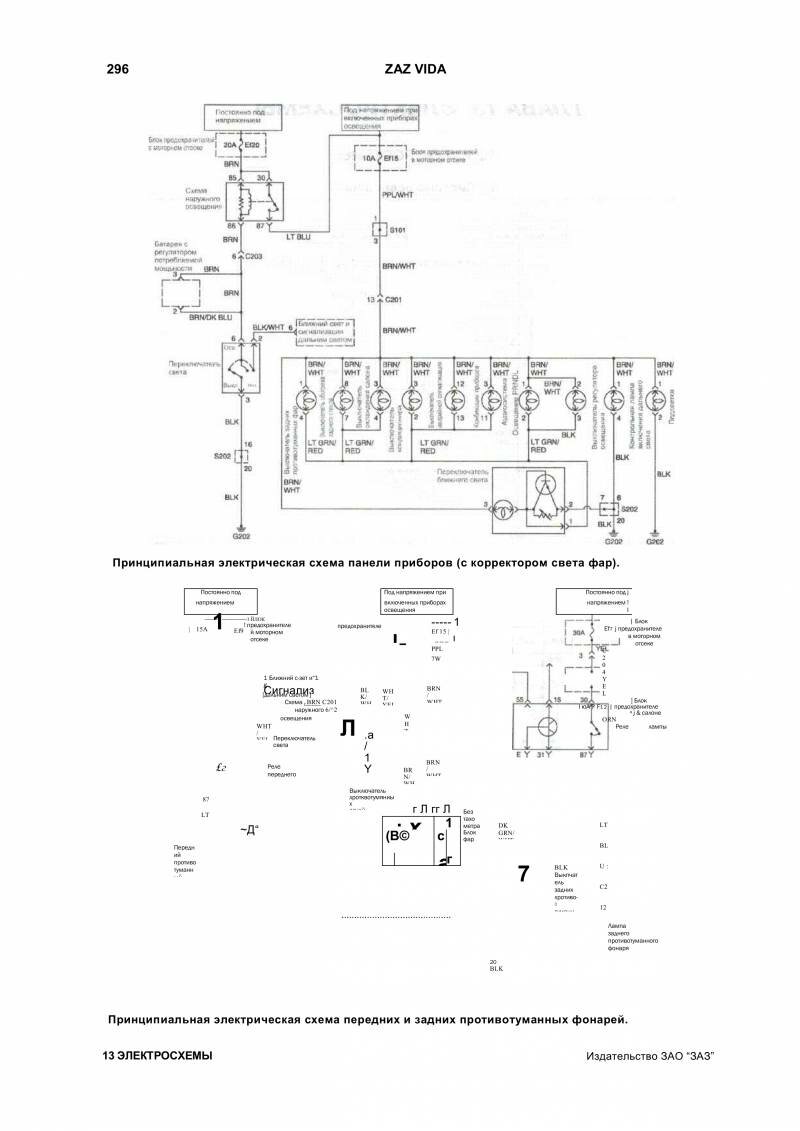 Электросхема переключателей Zaz Vida