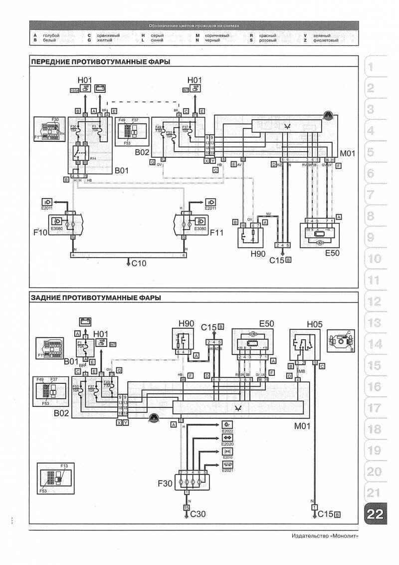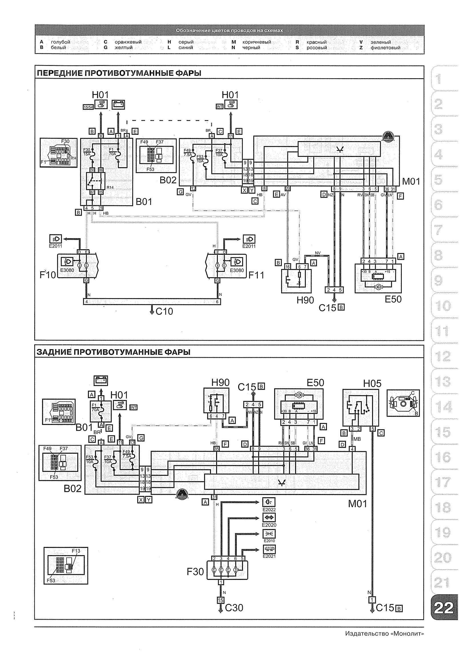 Эл-схема передних и задних противотуманных фар (противотуманок)