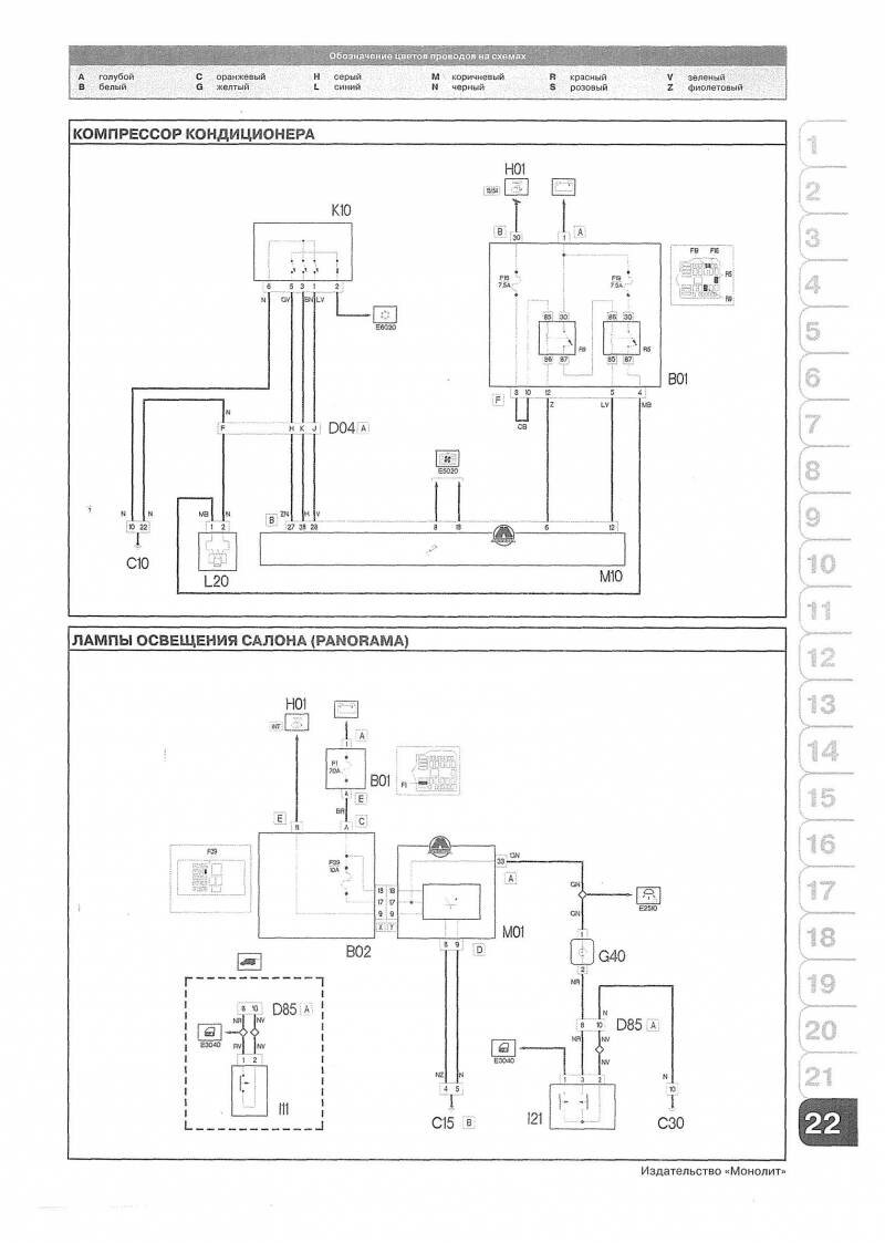 Электросхема компресосора кондиционера и ламп освещения салона