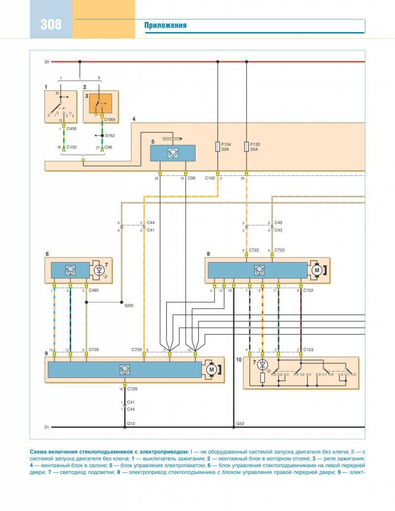 Стеклоподъёмники с электроприводом - схема принципиальная