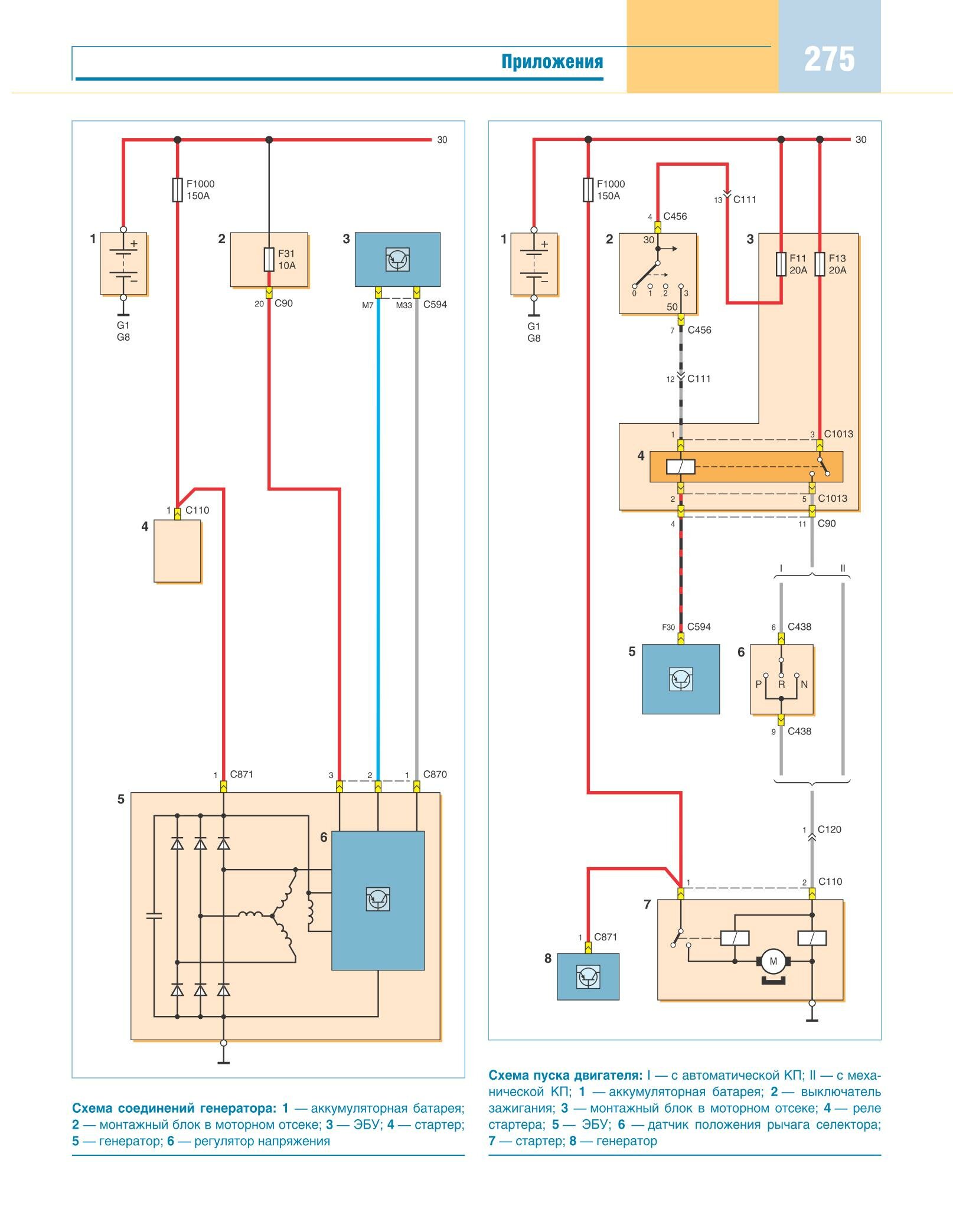 Схема соединений генератора и пуска двигателя