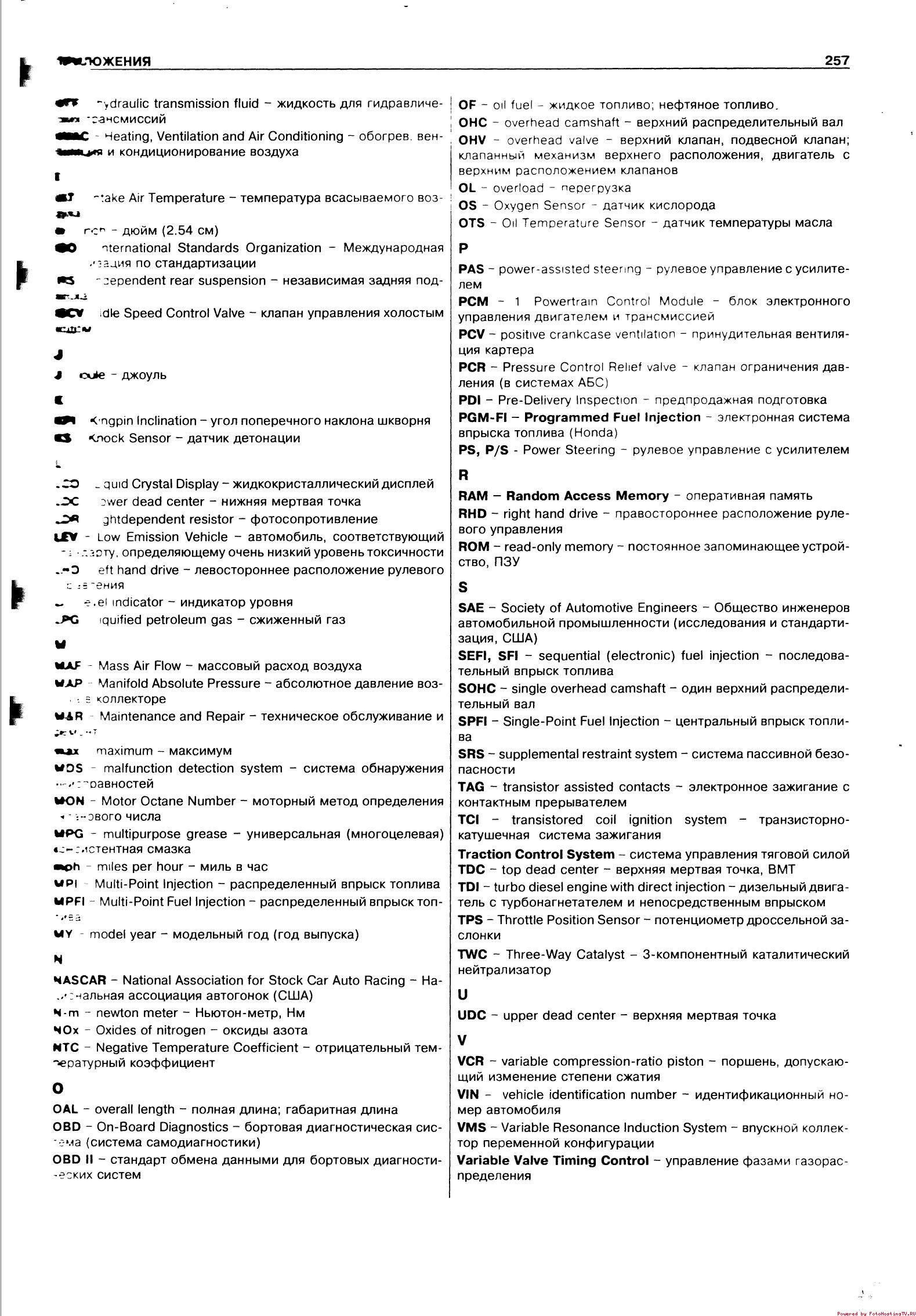 Список сокращений на схемах электрооборудования FORD MONDEO
