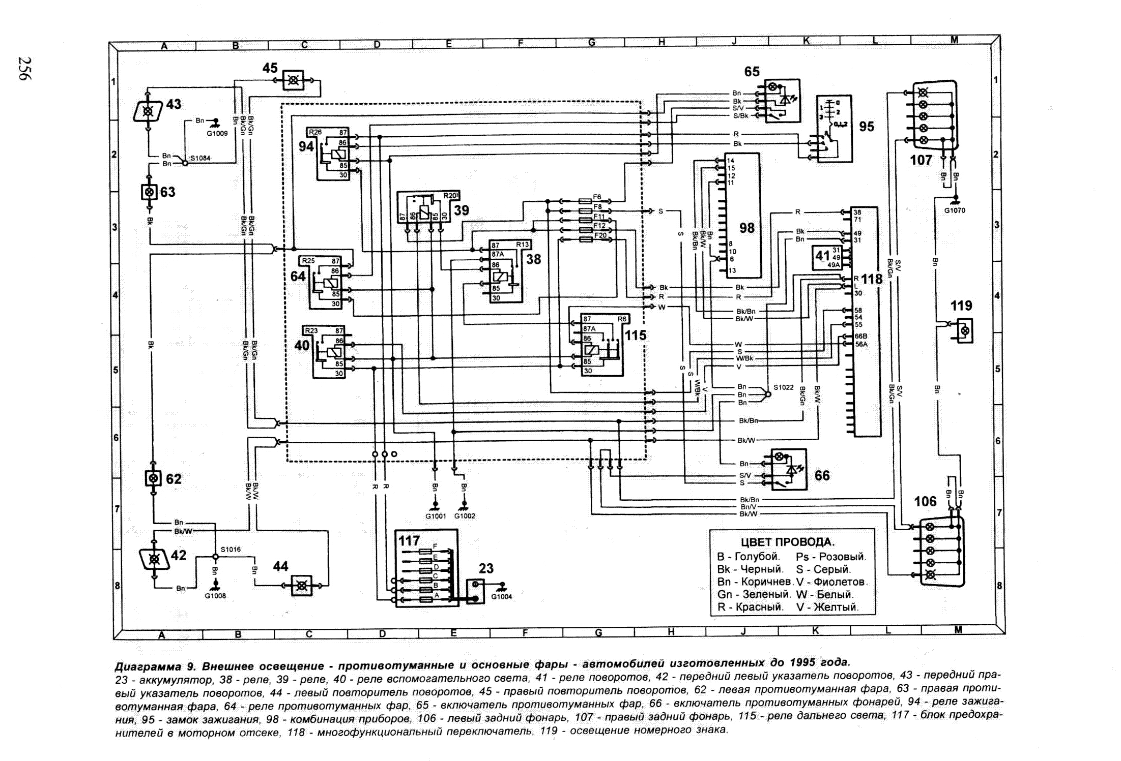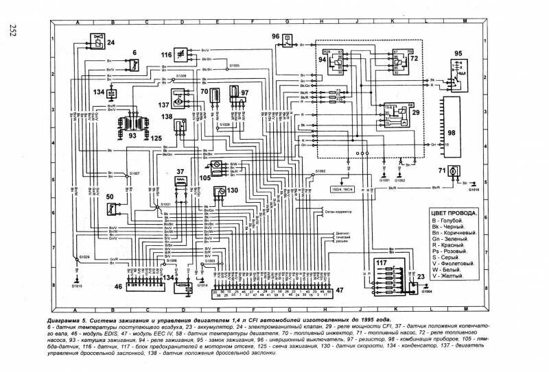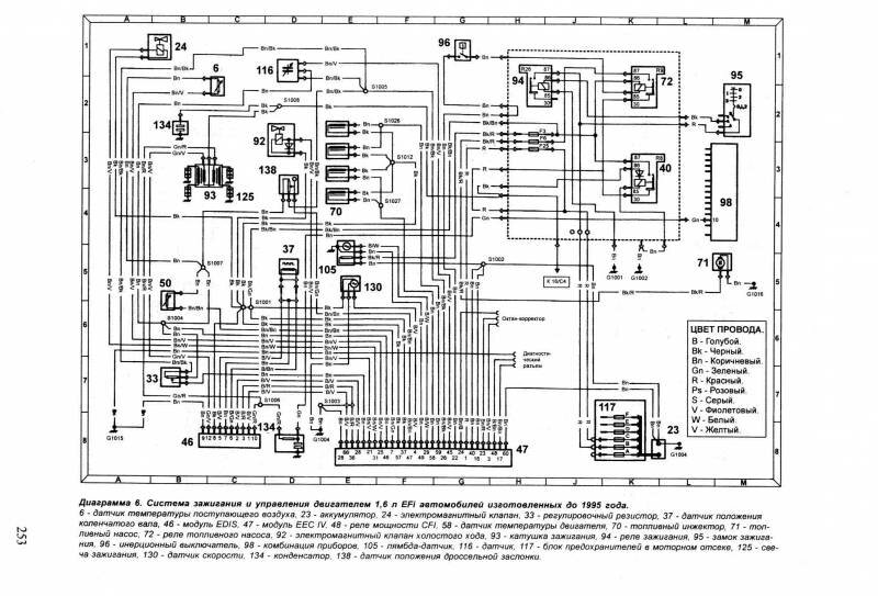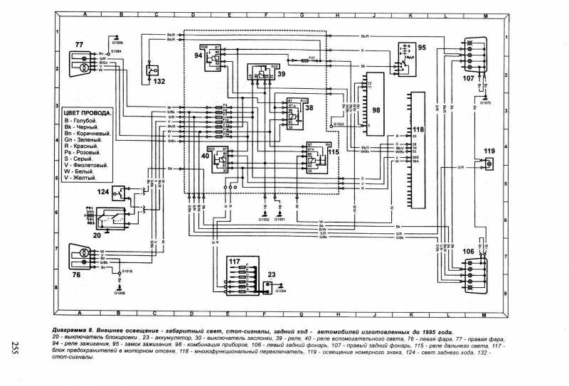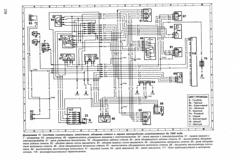 Числами в местах соединений на электрической схеме обозначены номера токовых контуров в соответствии со стандартом DIN.