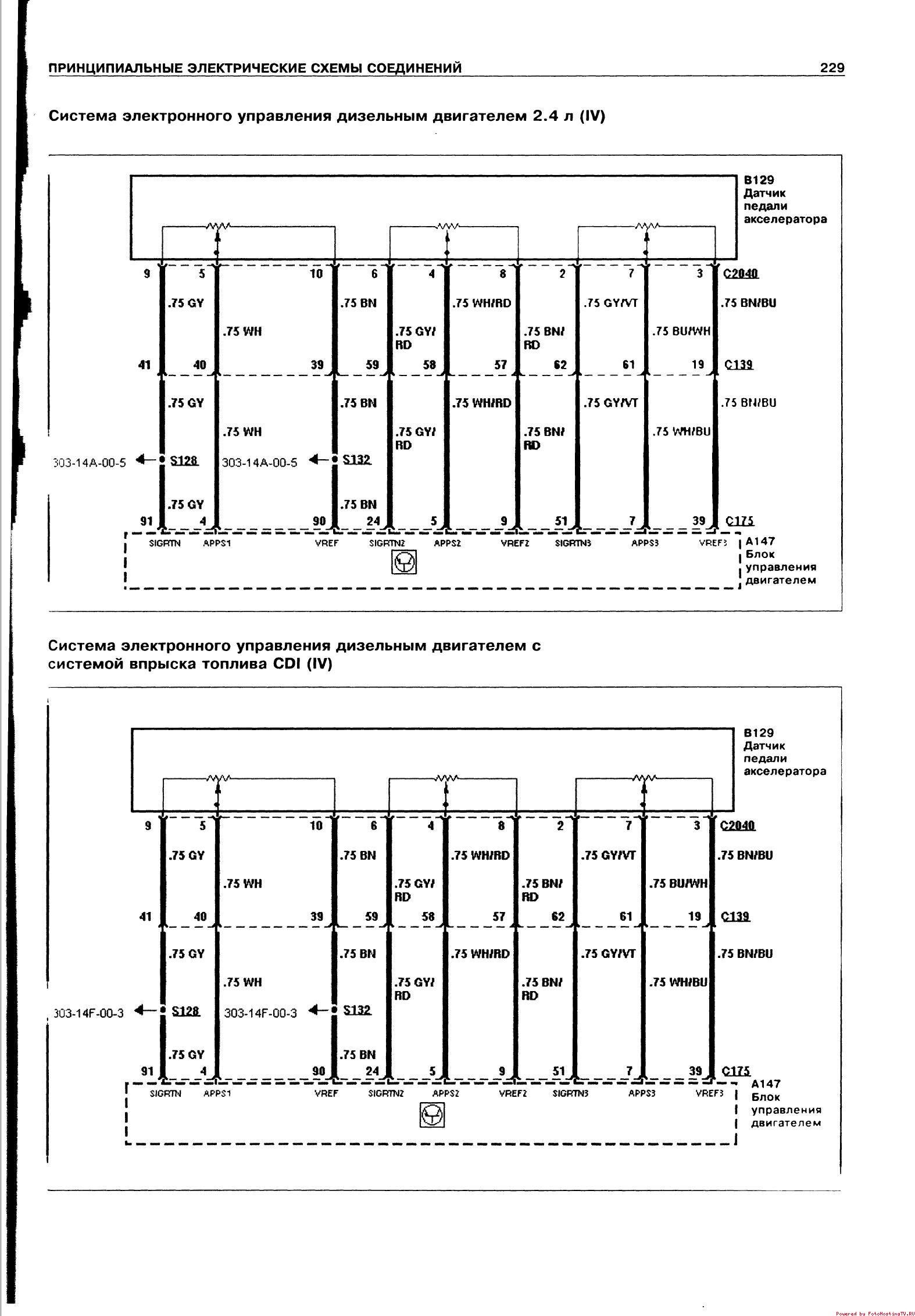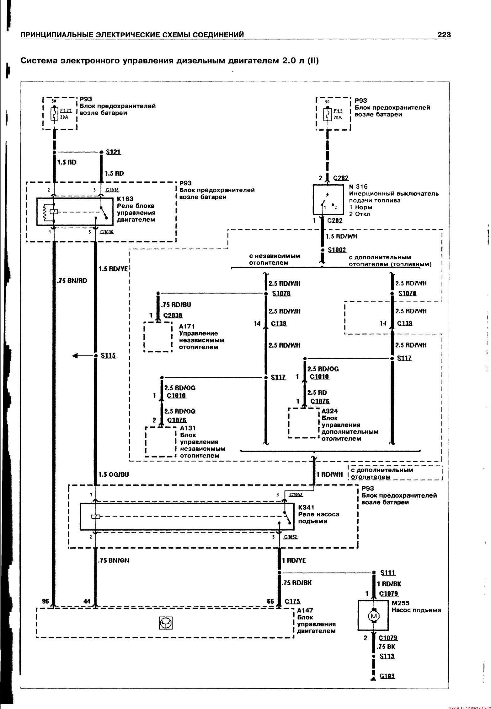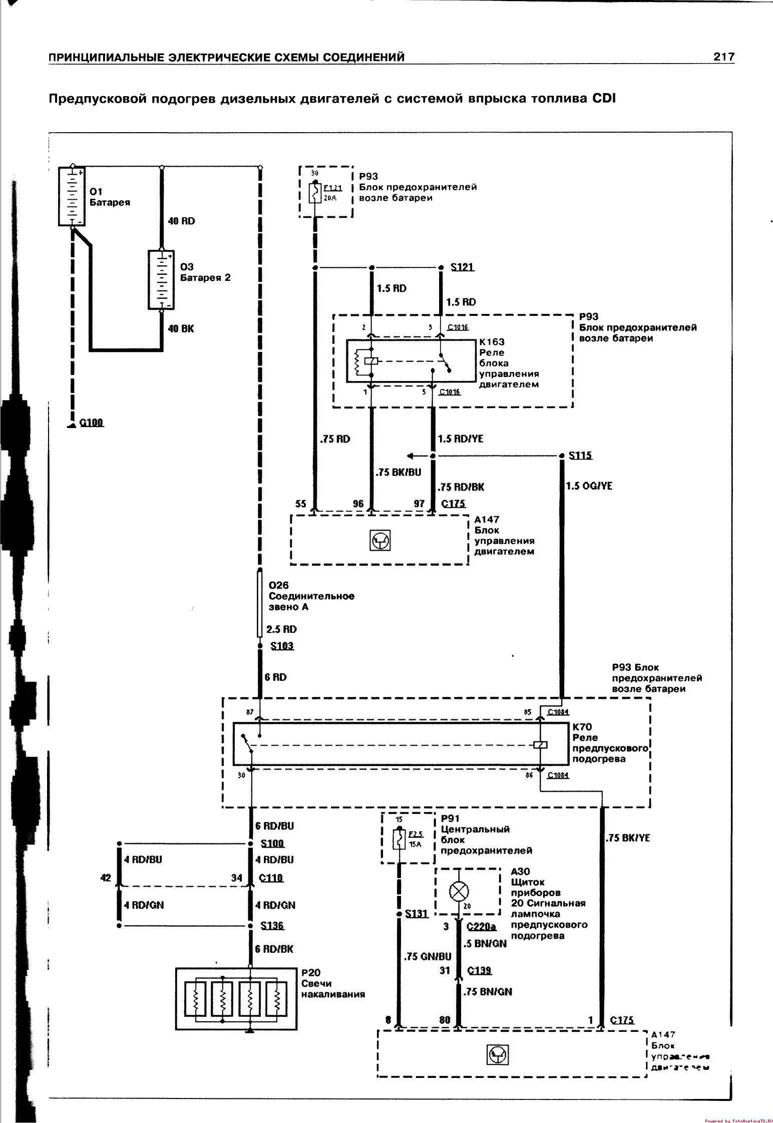 Схема системы пуска с системой предварительного прогрева впускного воздуха, используемой для нагрева топлива Ford Transit