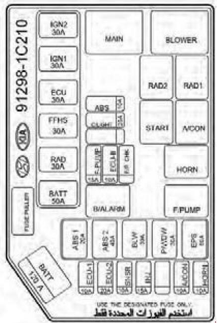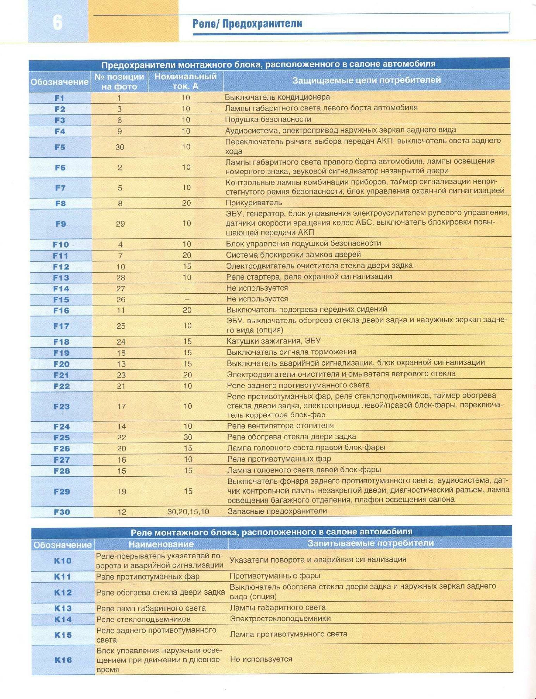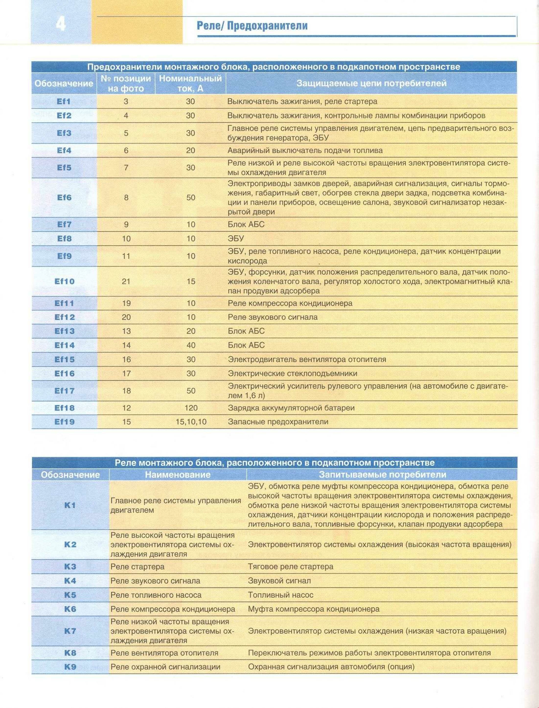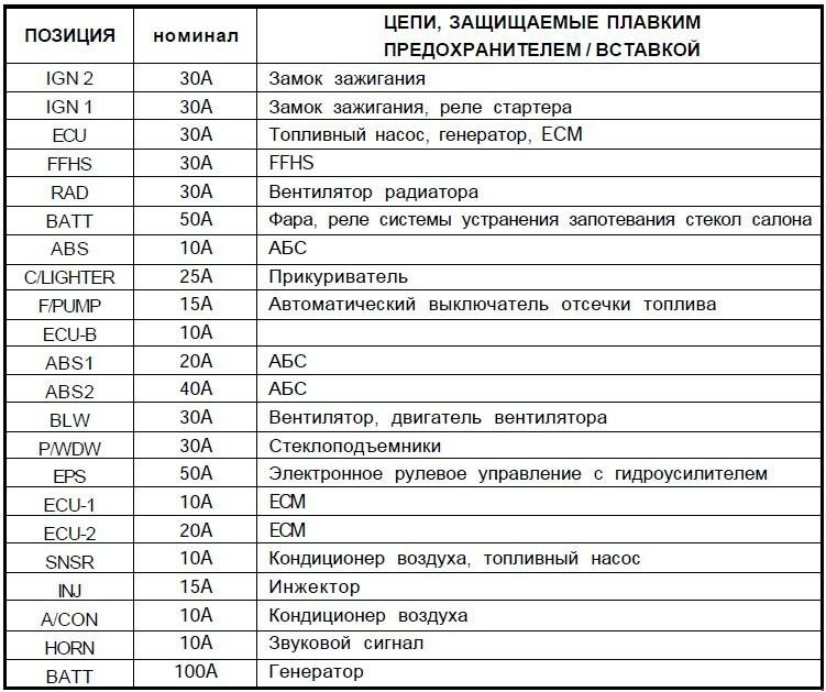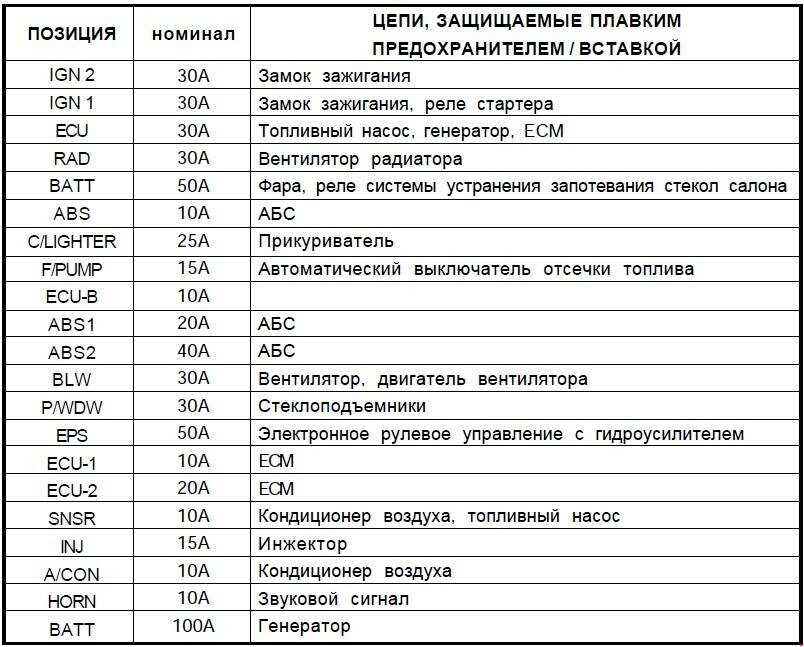 Предохранители монтажного блока, находящиеся в подкапотном пространстве