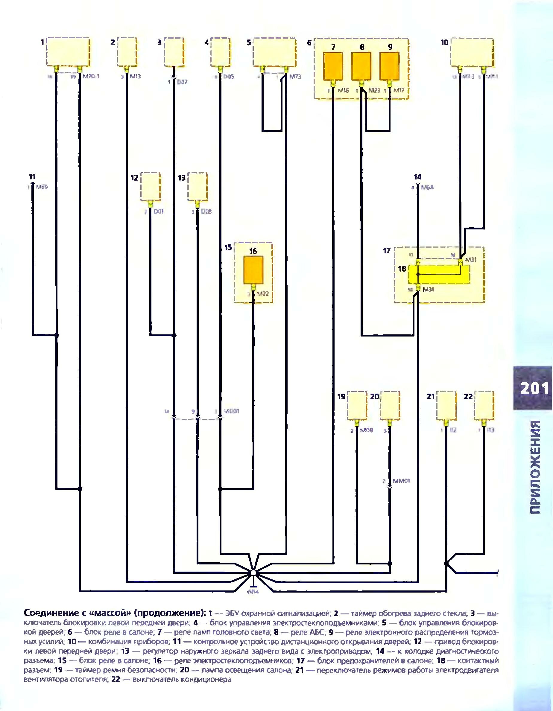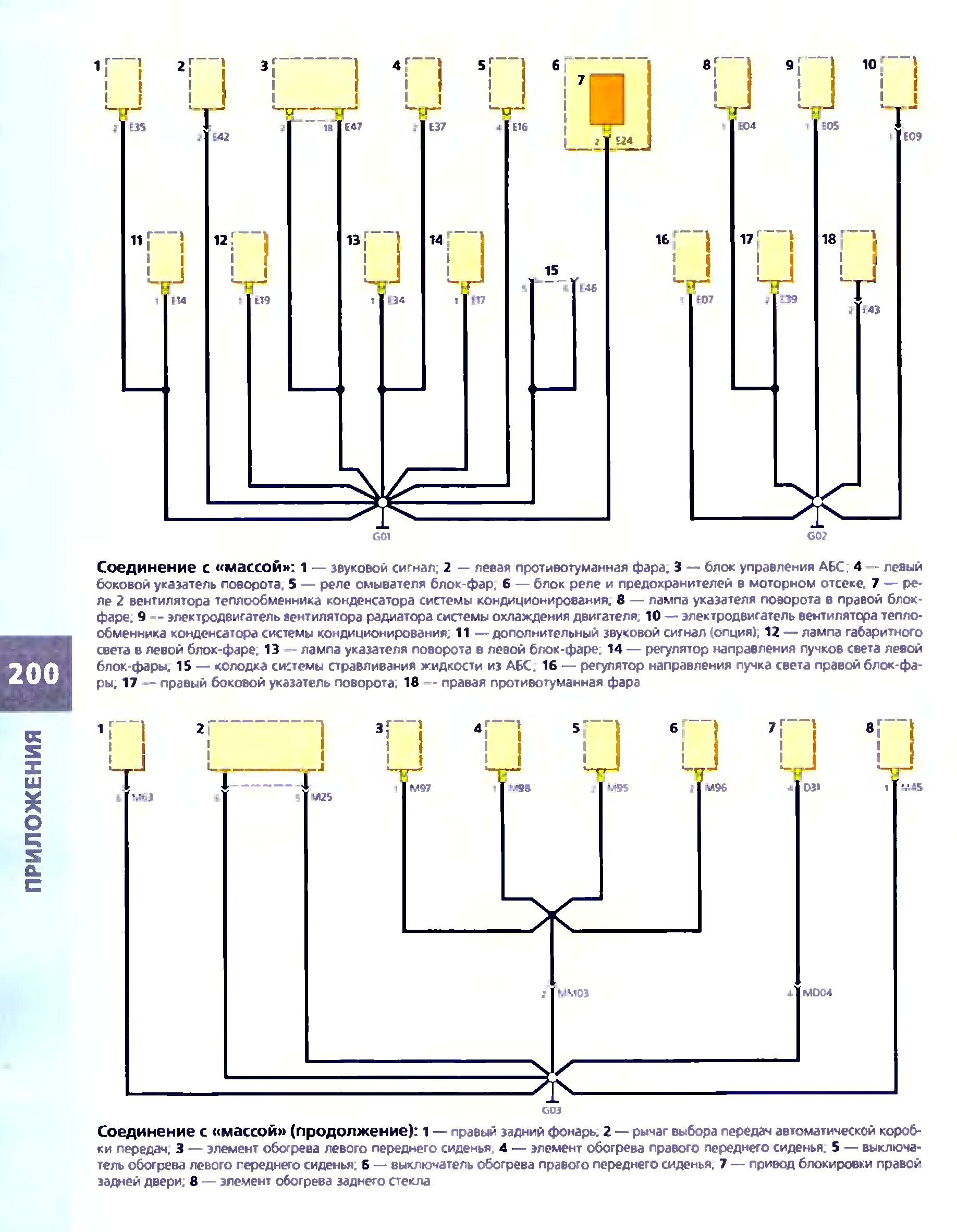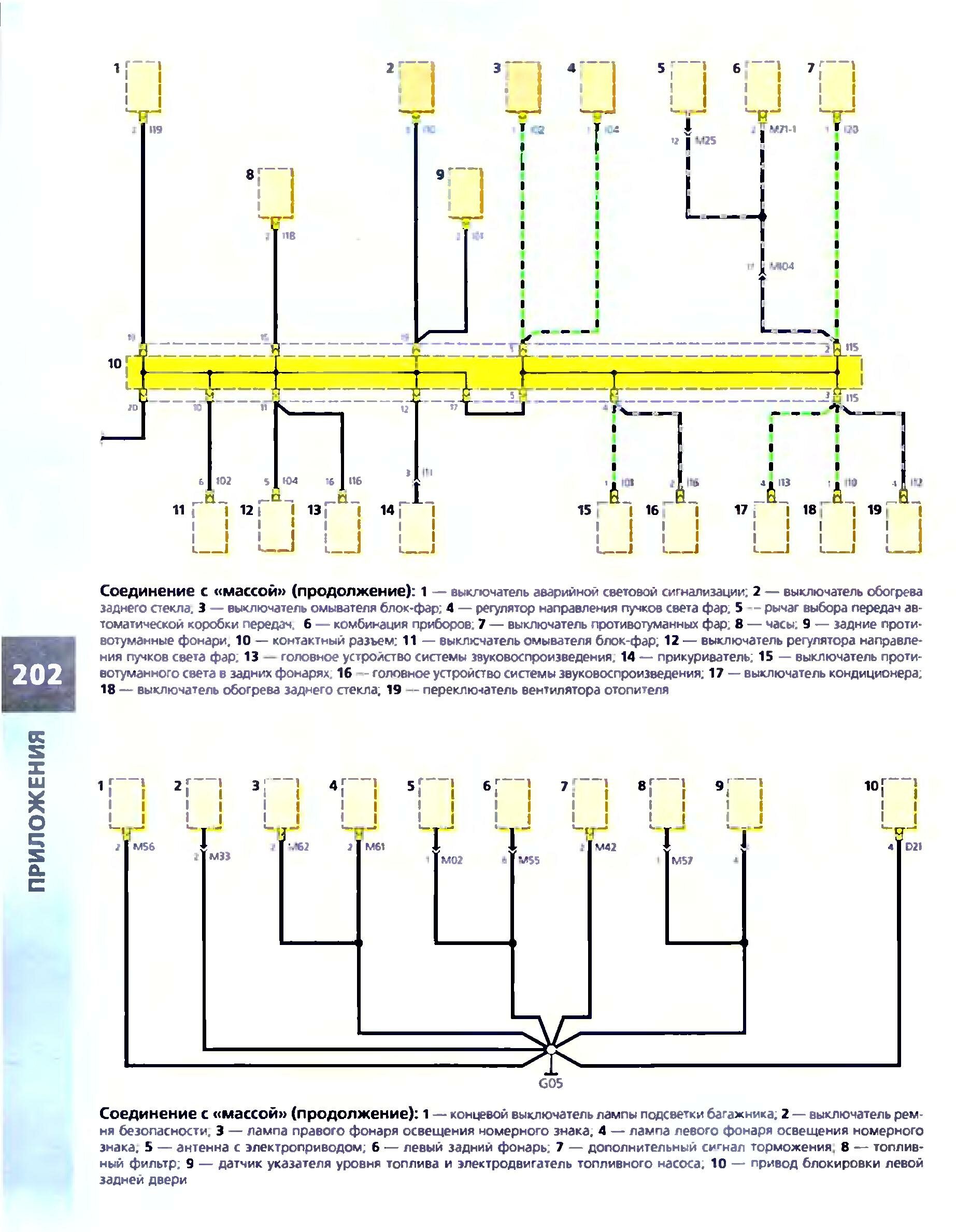 Бесплатный сборник цветных схем на русском языке электрооборудования автомобиля Hyundai Accent (1,5i) с 2000 года выпуска. Тут показан блок реле и предохранителей, а также некоторые другие модули. Продолжение каталога схем читайте далее. Предохранители служат для того, чтобы разрывать цепь, когда сила тока достигнет определенного значения, для того, чтобы защитить элементы и провода, которые могут быть повреждены слишком сильным током. Резкое увеличение силы тока обычно вызвано неисправностью в цепи, чаще всего коротким замыканием. Обозначения цепей, защищаемых предохранителями, указаны на крышке блока предохранителей.