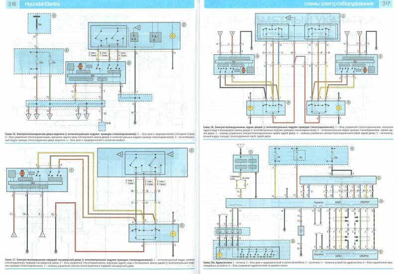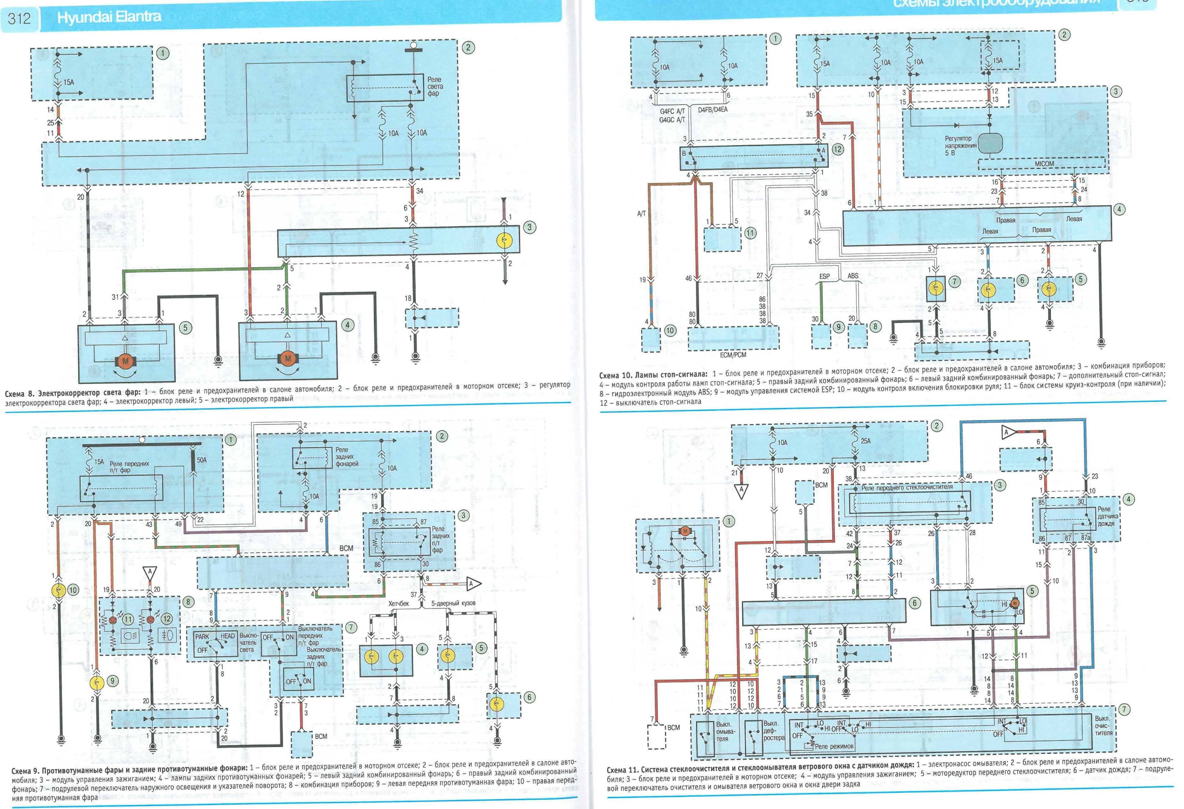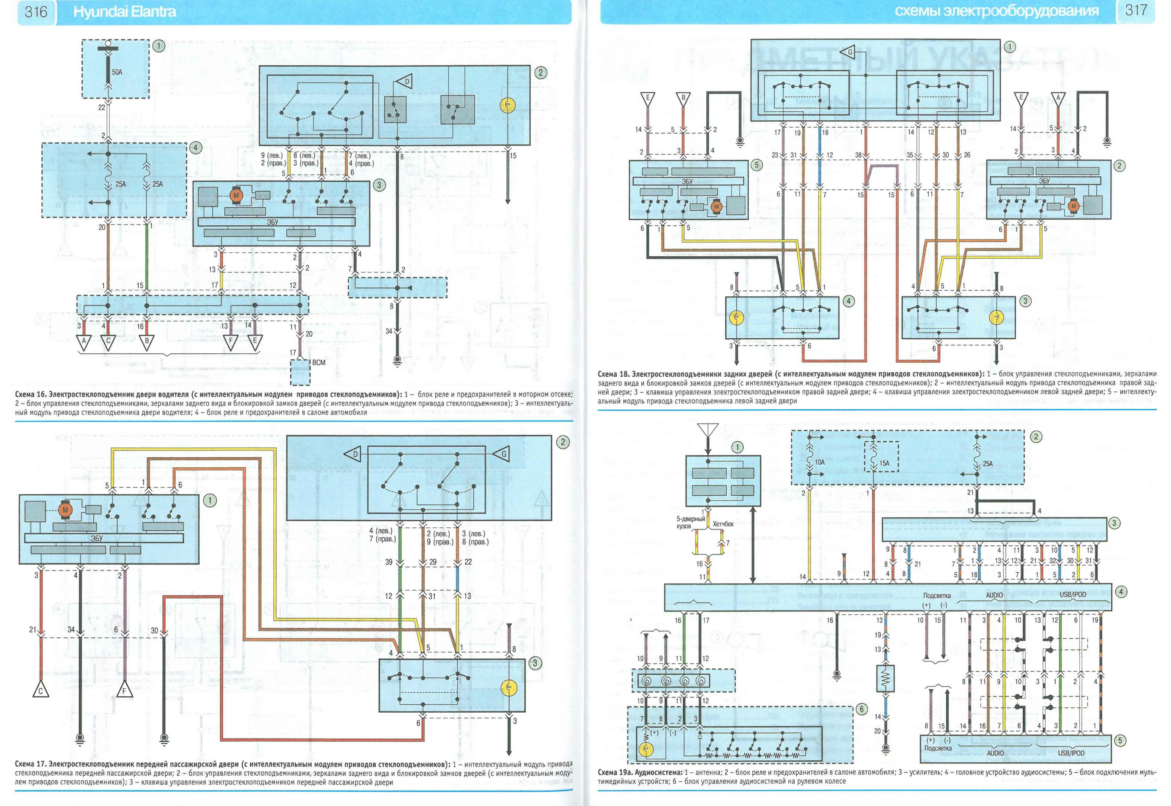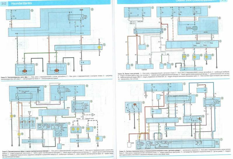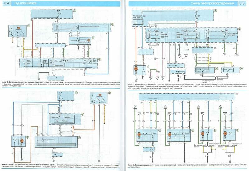 Схемы электрооборудования омывателей стёкол и приводов замков дверей Элантра