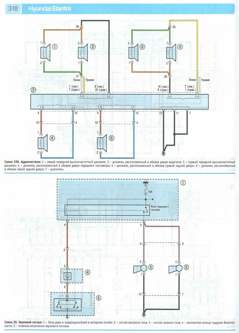 Схема четырёхканальной аудиосистемы Элантра и звуковой сигнал