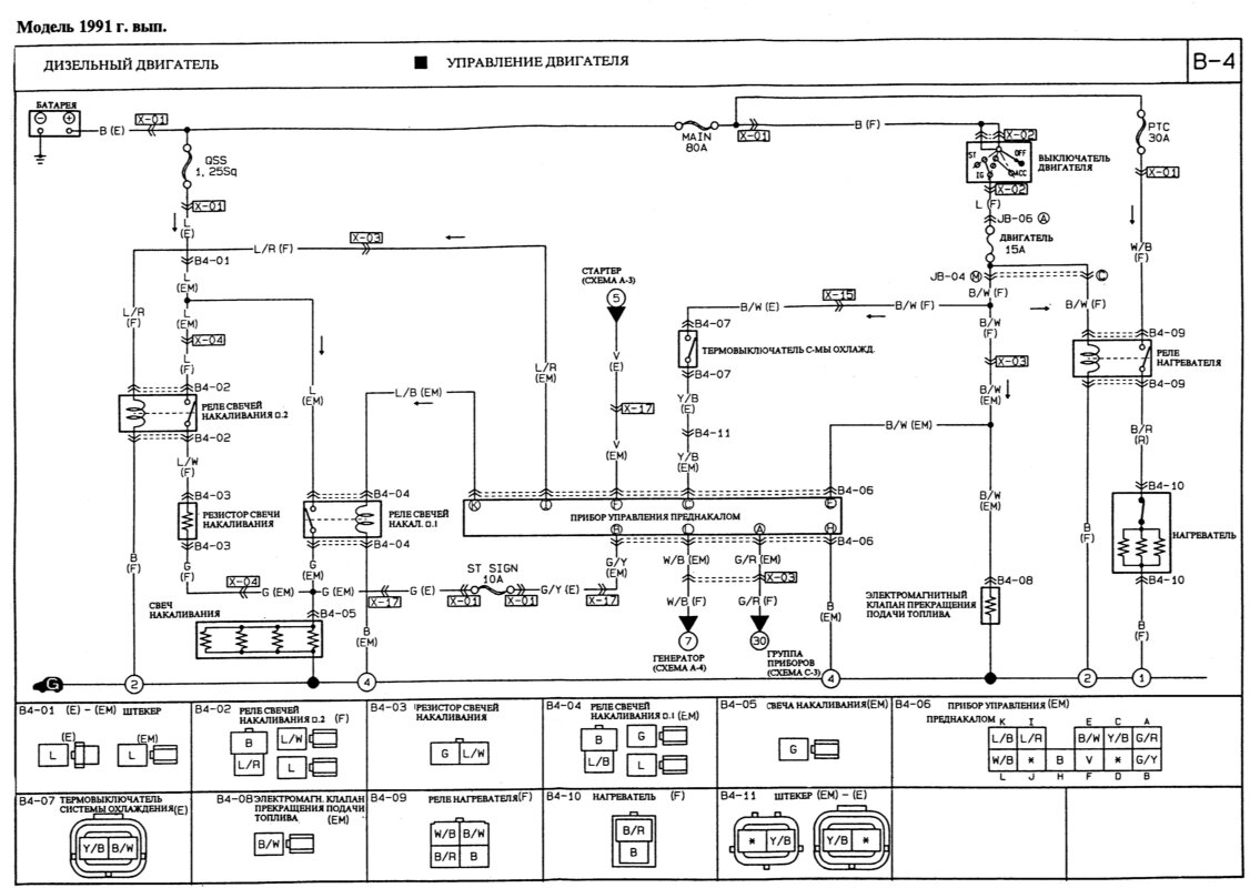 Схема дизельного двигателя Мазда 323 - прокладка кабелей