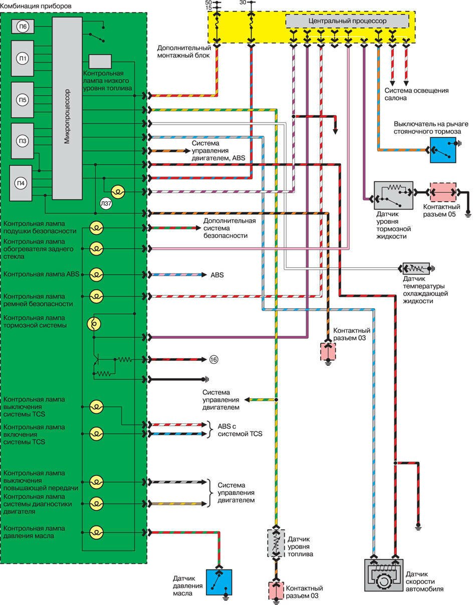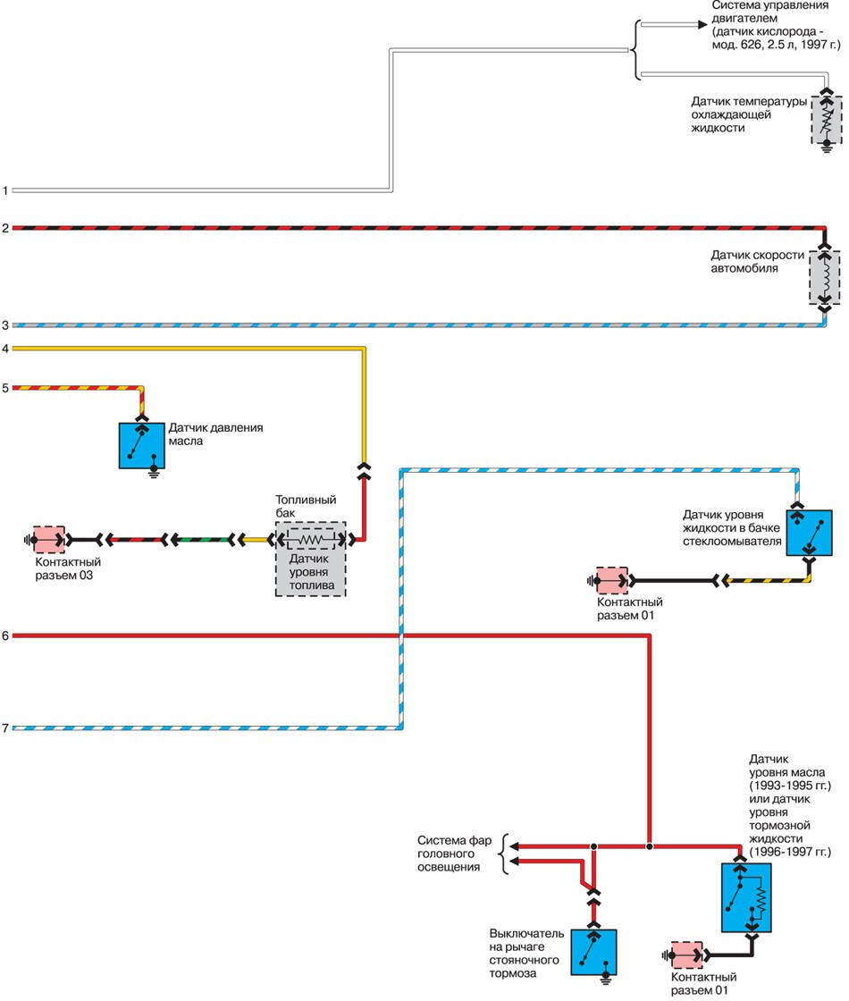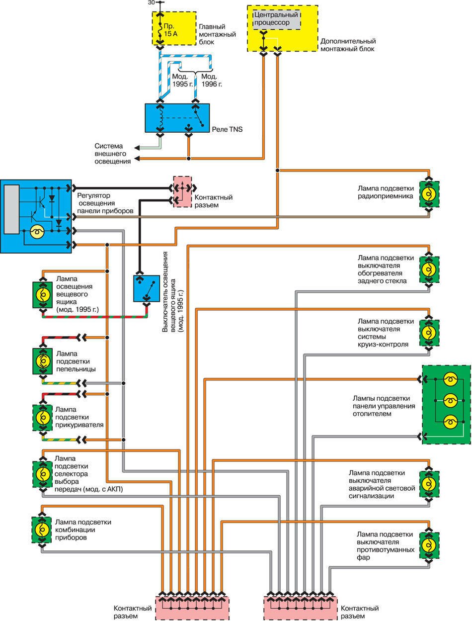 Датчики приборного щитка и сигнальные лампочки - модели 1993 и 1998 г.