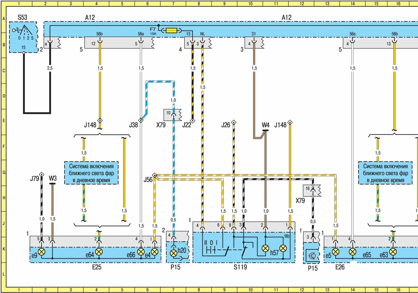 A12f4 Предохранитель ламп света заднего хода (гнездо 4) 79B