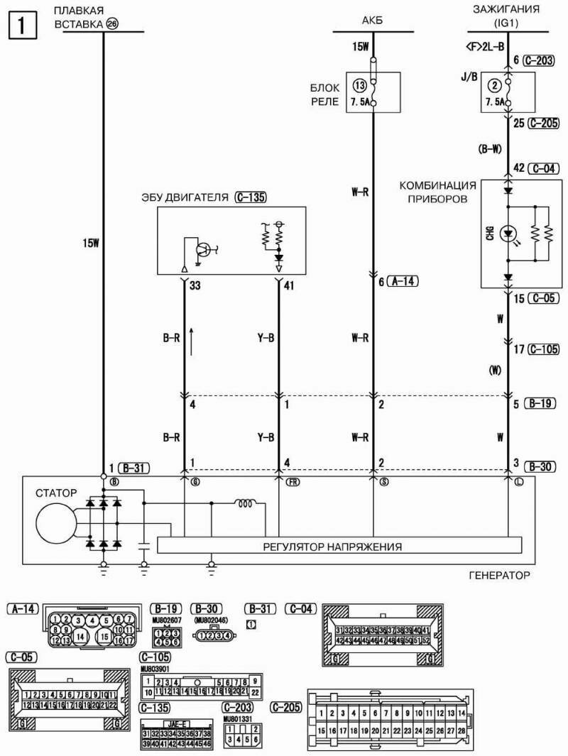 Электрооборудование Mitsubishi Outlander - схема соединения стартера и замка зажигания