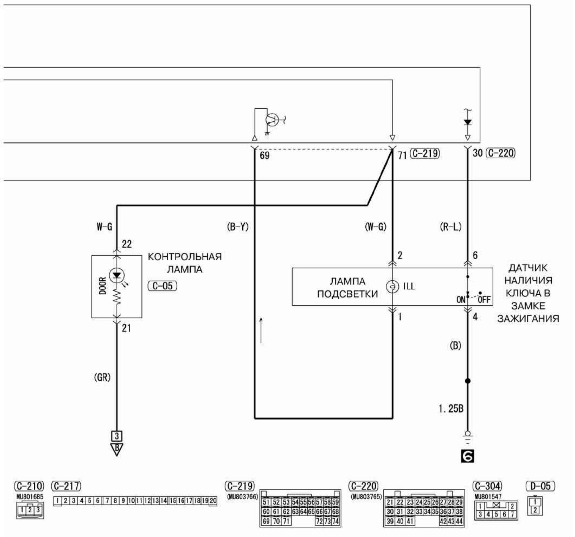 Схема концевого выключателя двери Mitsubishi Outlander