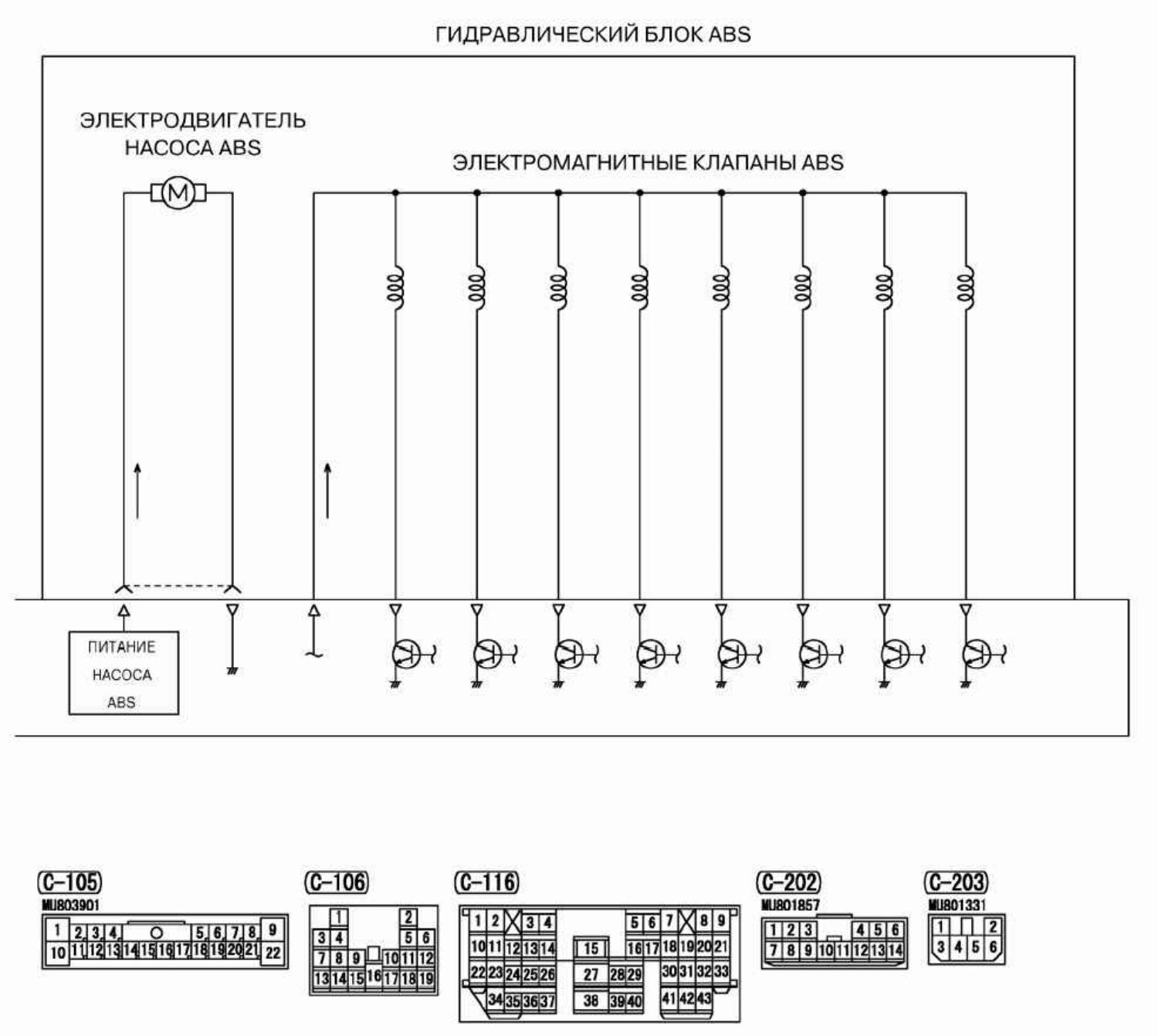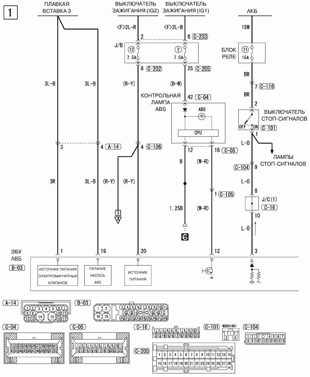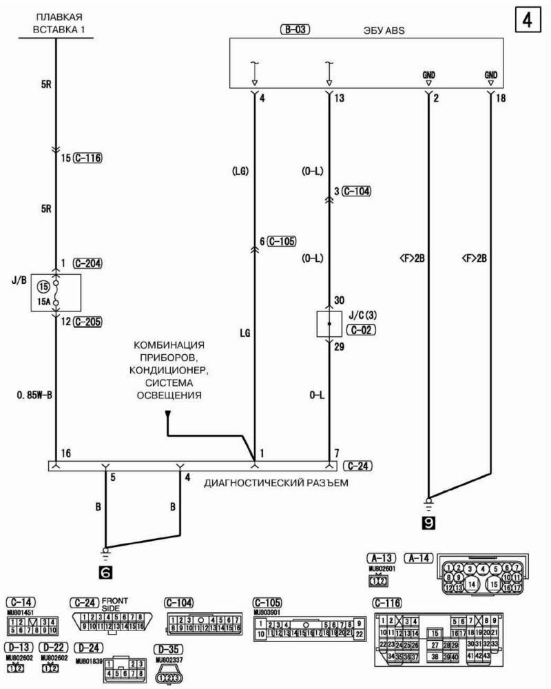 Принципиальная схема ЭБУ ABS Mitsubishi Outlander