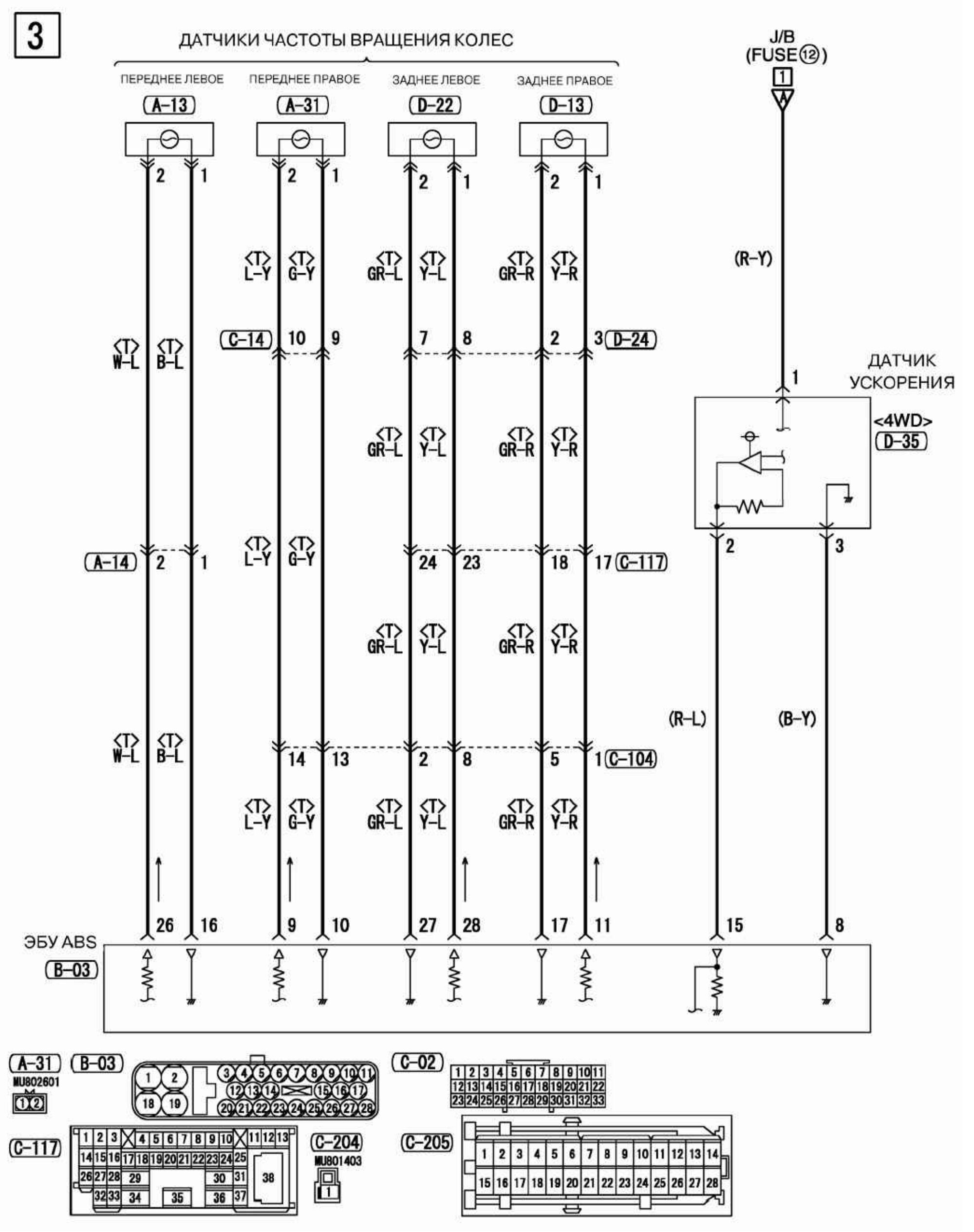 Схема датчиков частоты вращения колёс авто