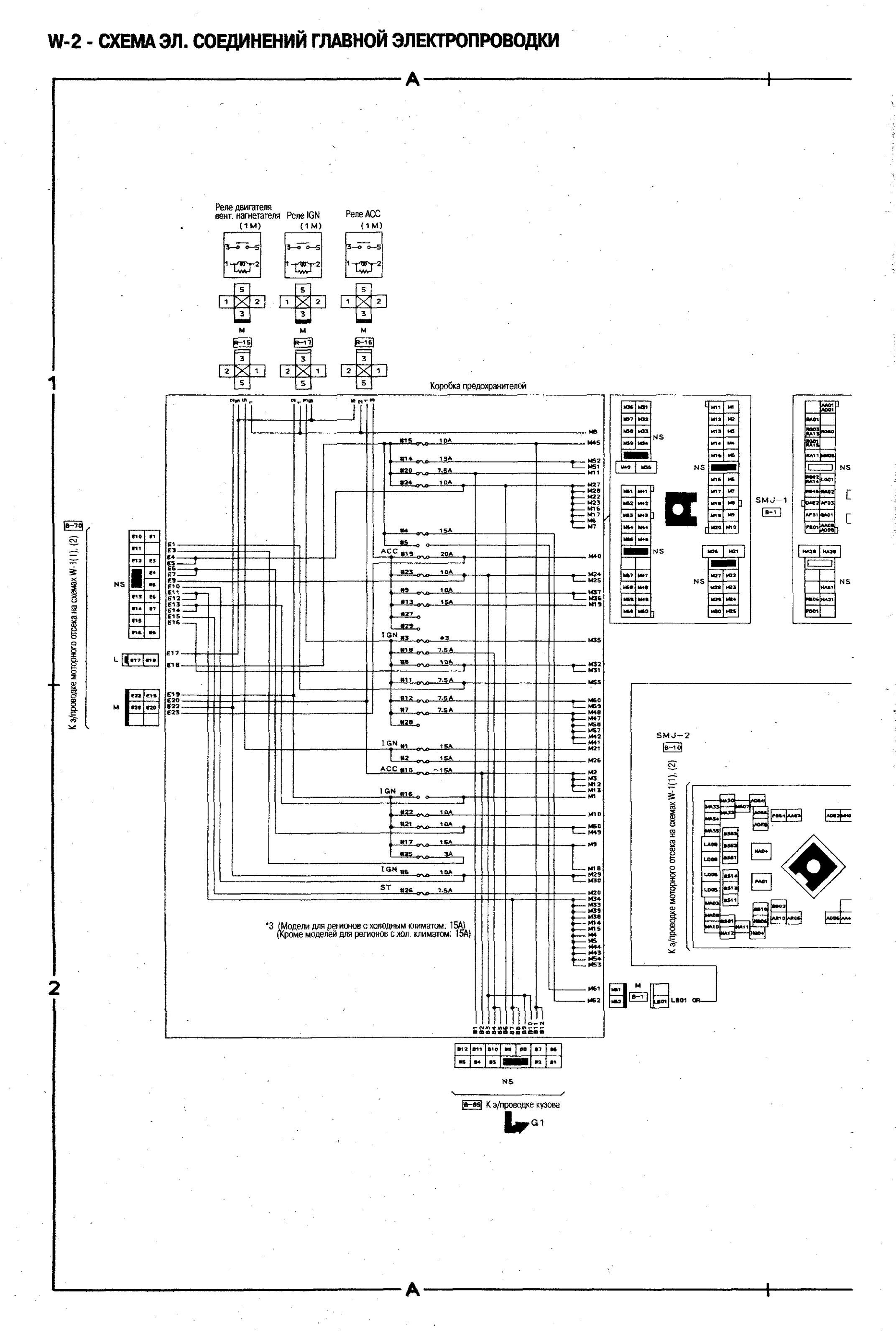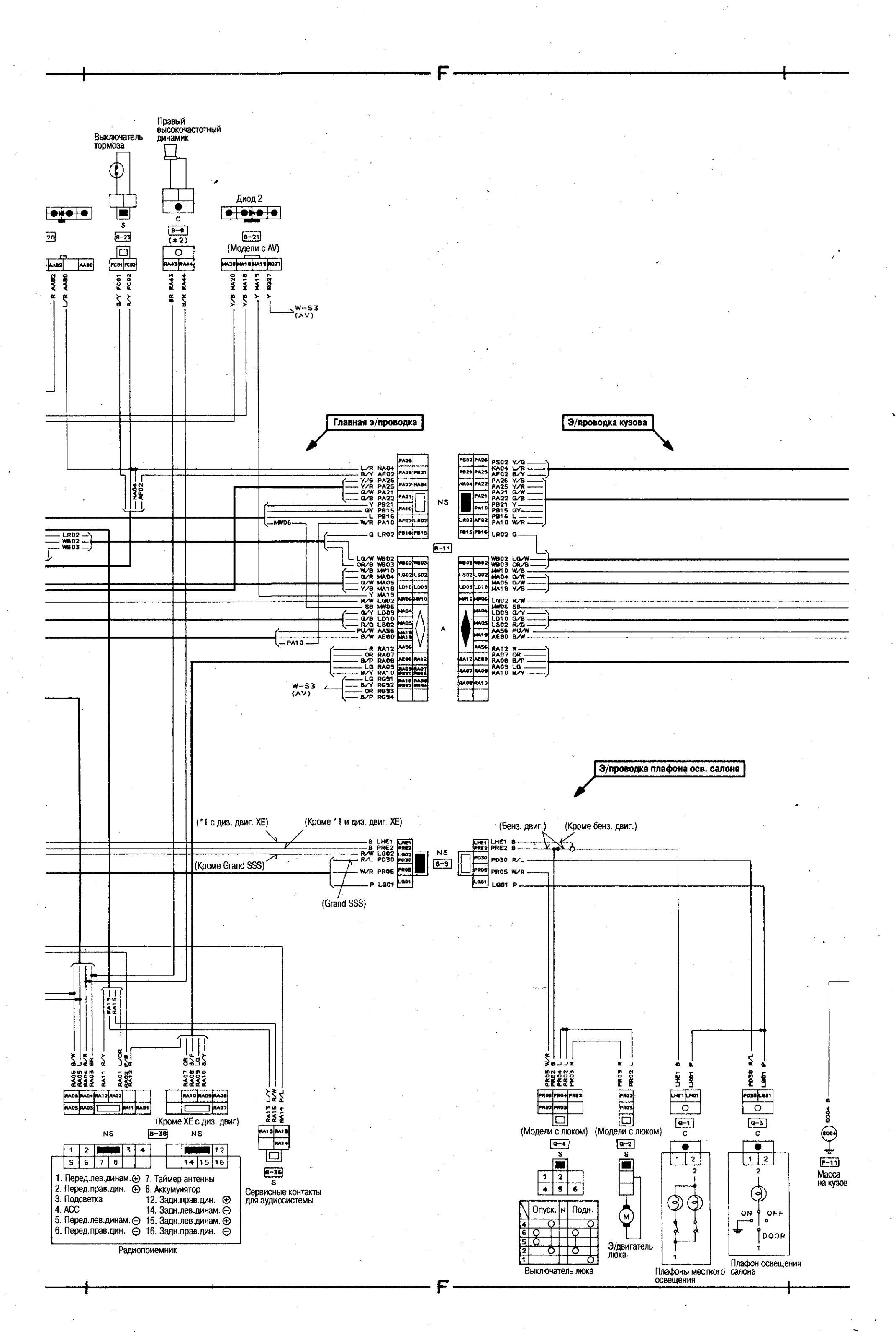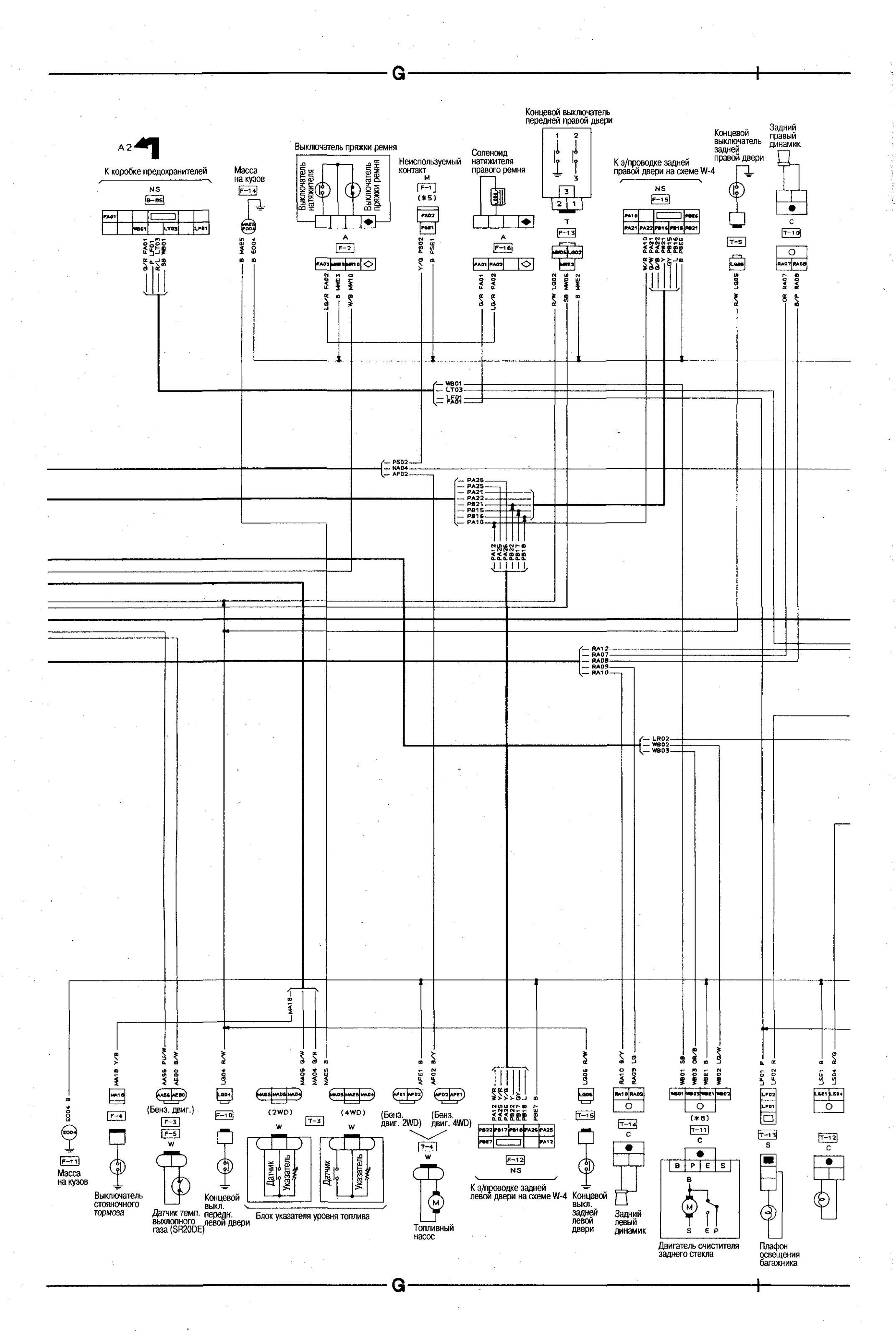 Электросхема соединений главной проводки Nissan Bluebird