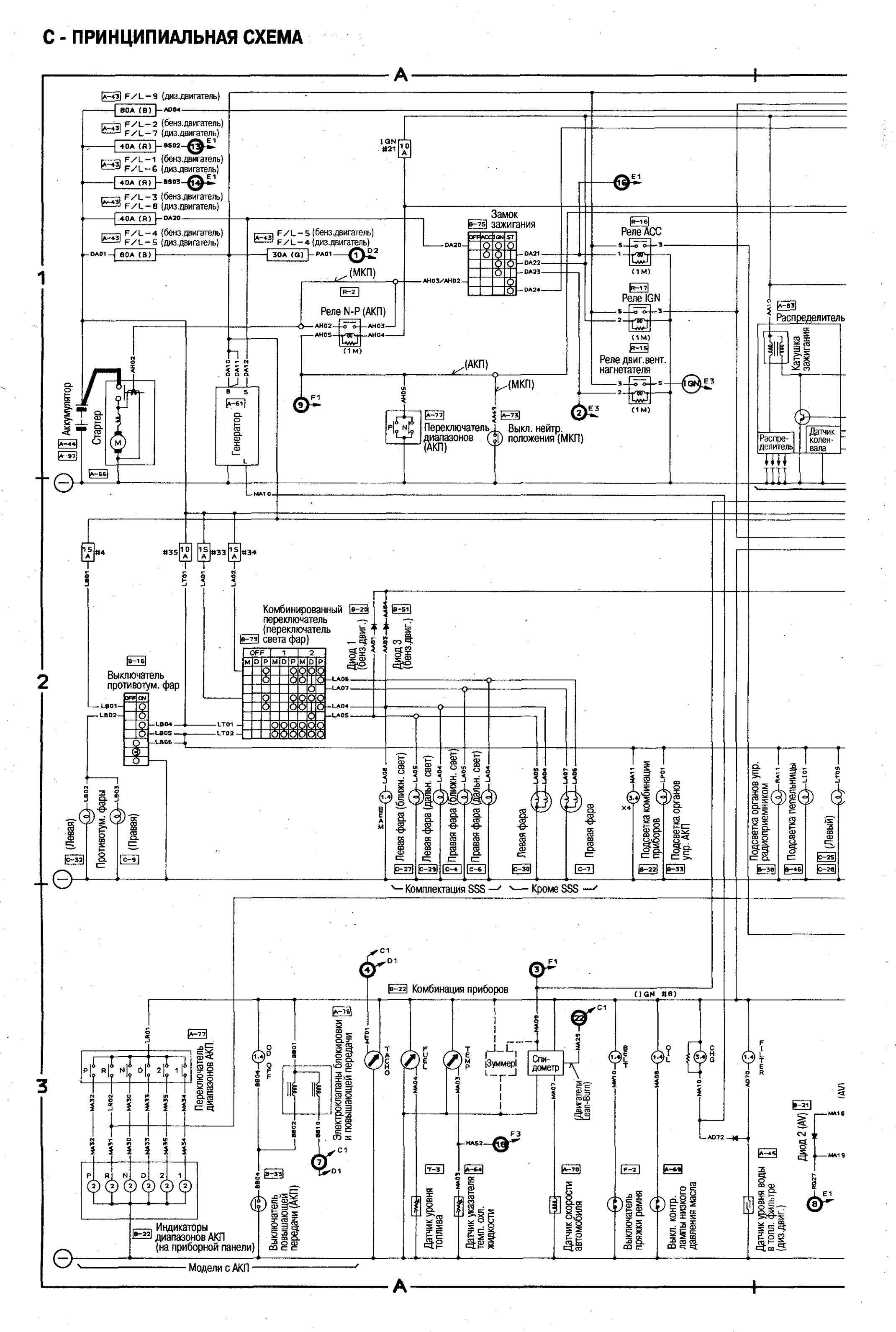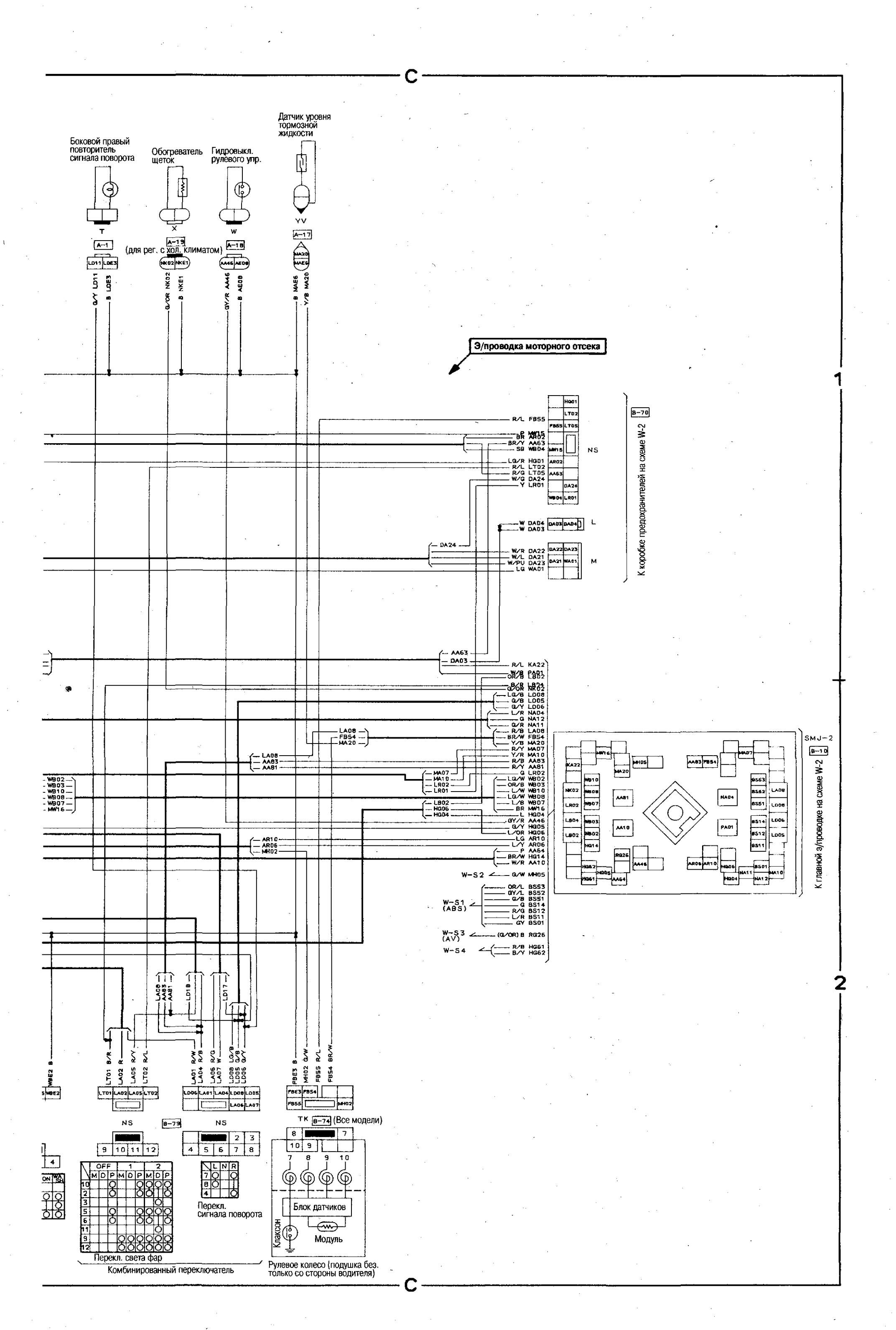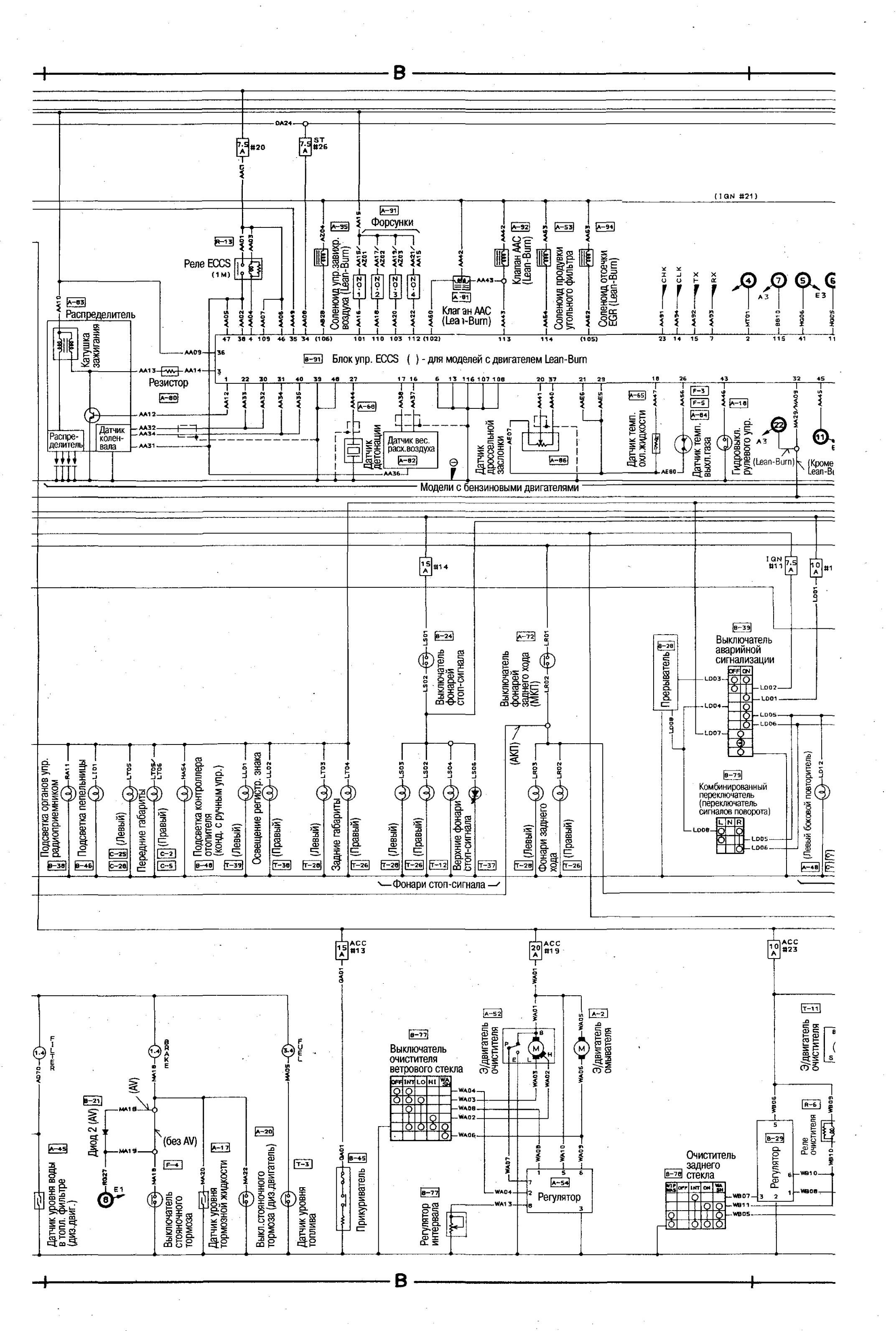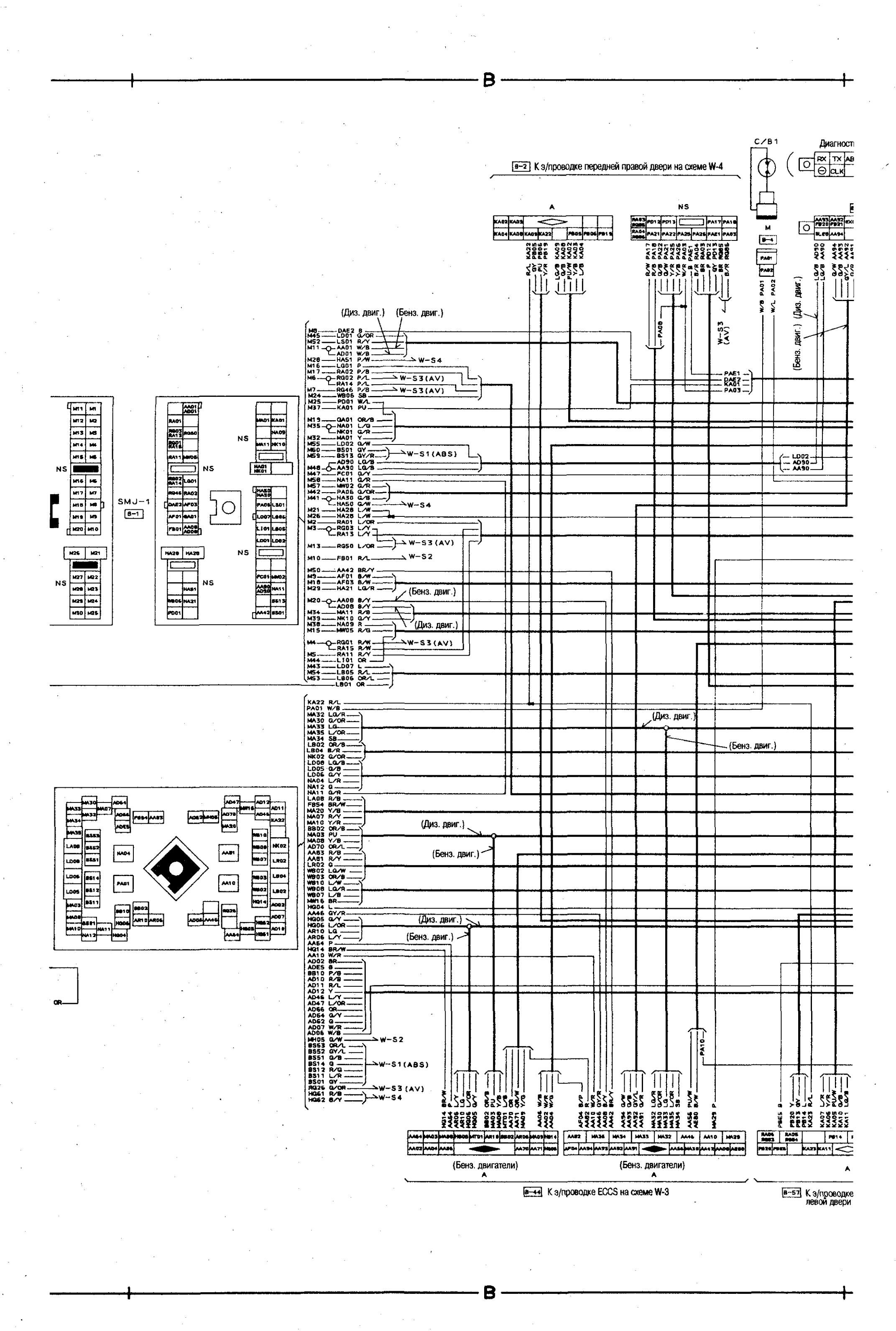 Электросхема соединений главной проводки Nissan Bluebird
