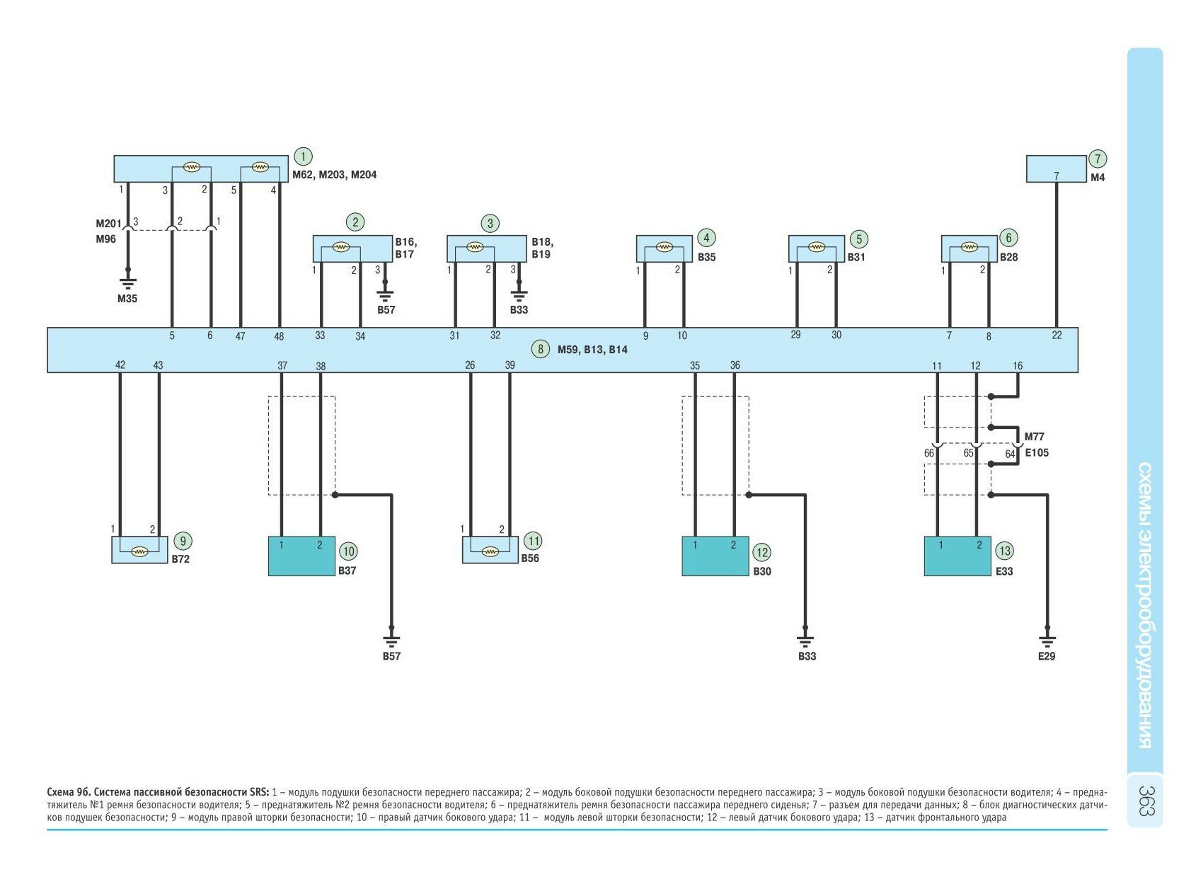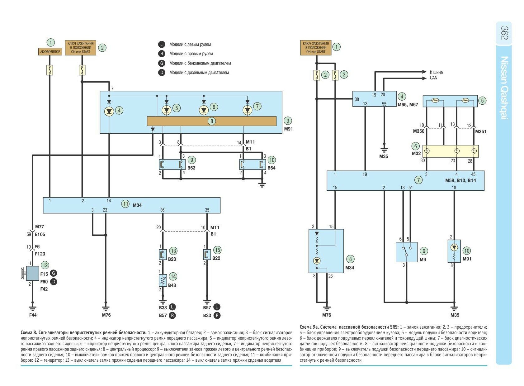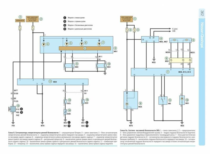 Система SRS Nissan Qashqai - электросхема