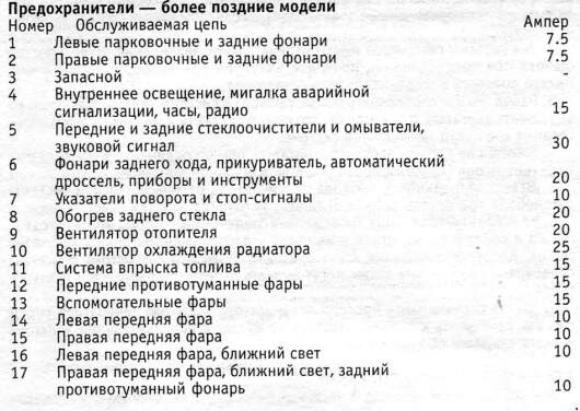 Перечень и назначение предохранителей Opel Ascona 1981-1988