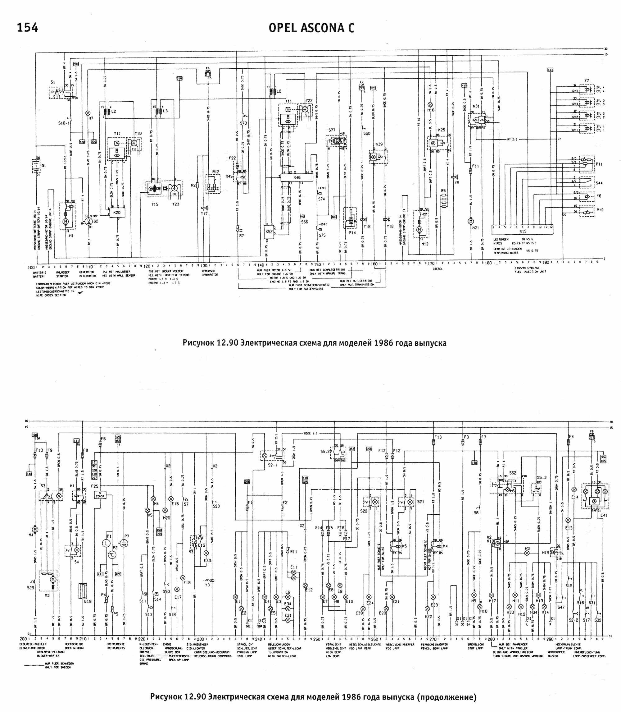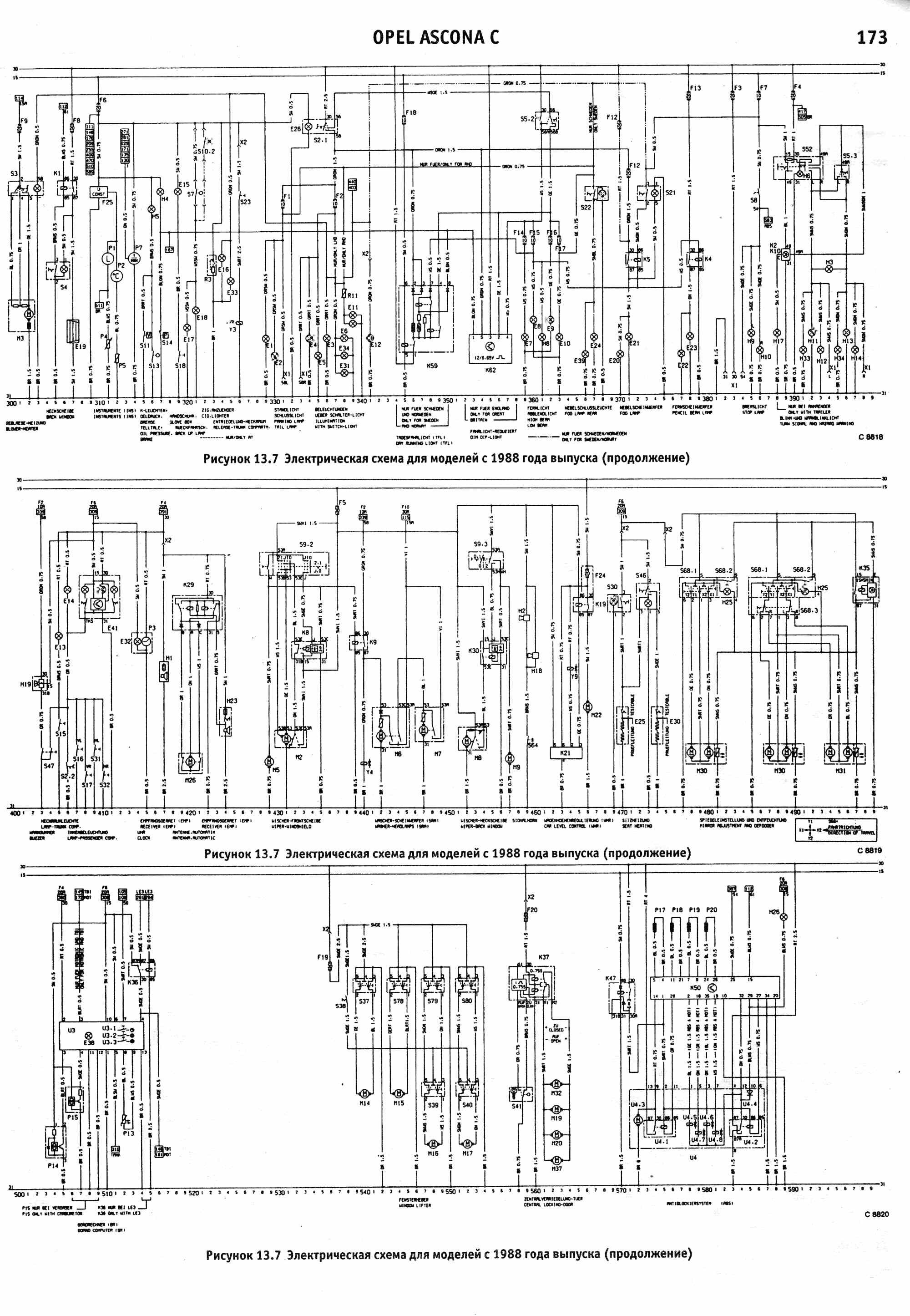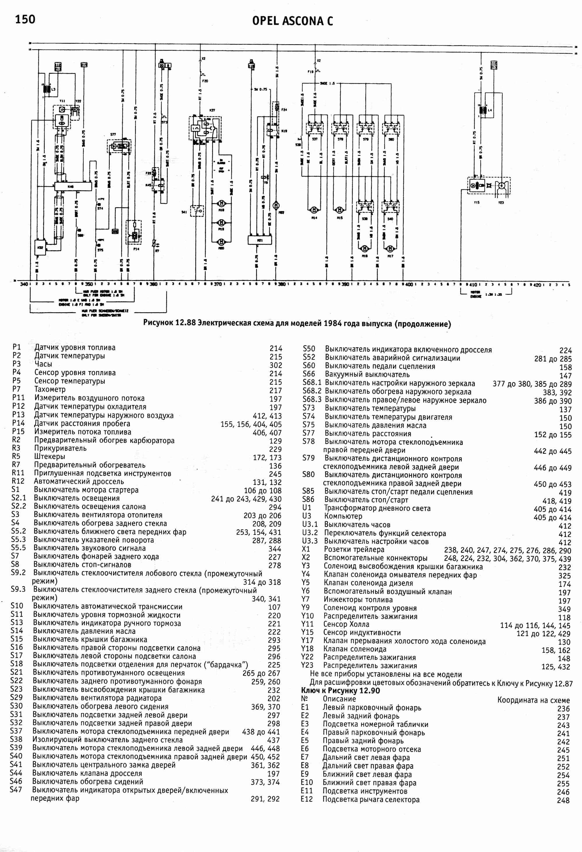 Схема электрическая Opel Ascona 1988